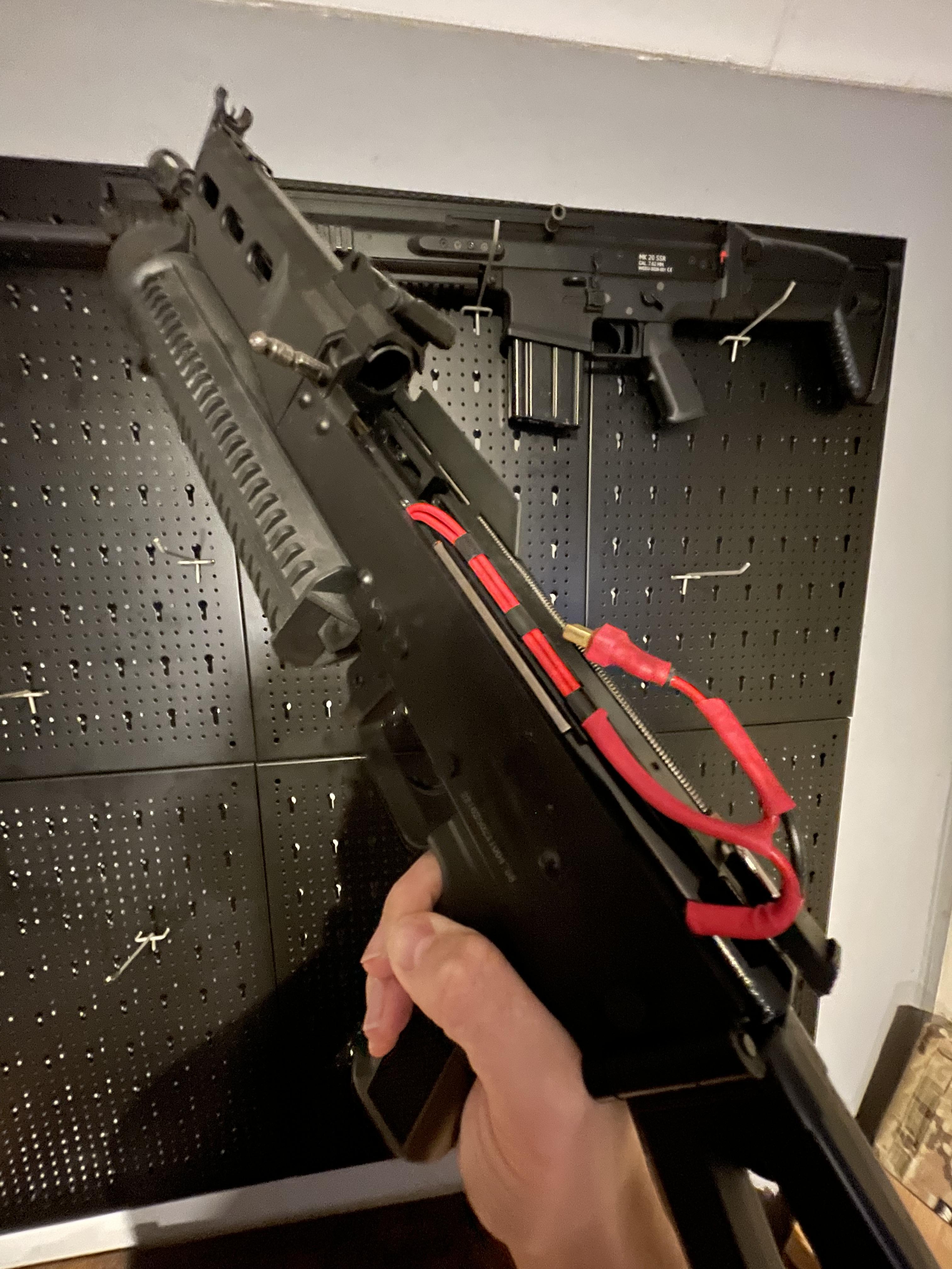 I purchased this as a boneyard last year and was in a bit of a state. I rewired the damaged cable and fitted oversized conductors to deans, this was just for proof that it worked and cycled. Some parts were swapped out with used ones. The gun cycles and fires and feeds in semi and full. doing 251 on a .25.