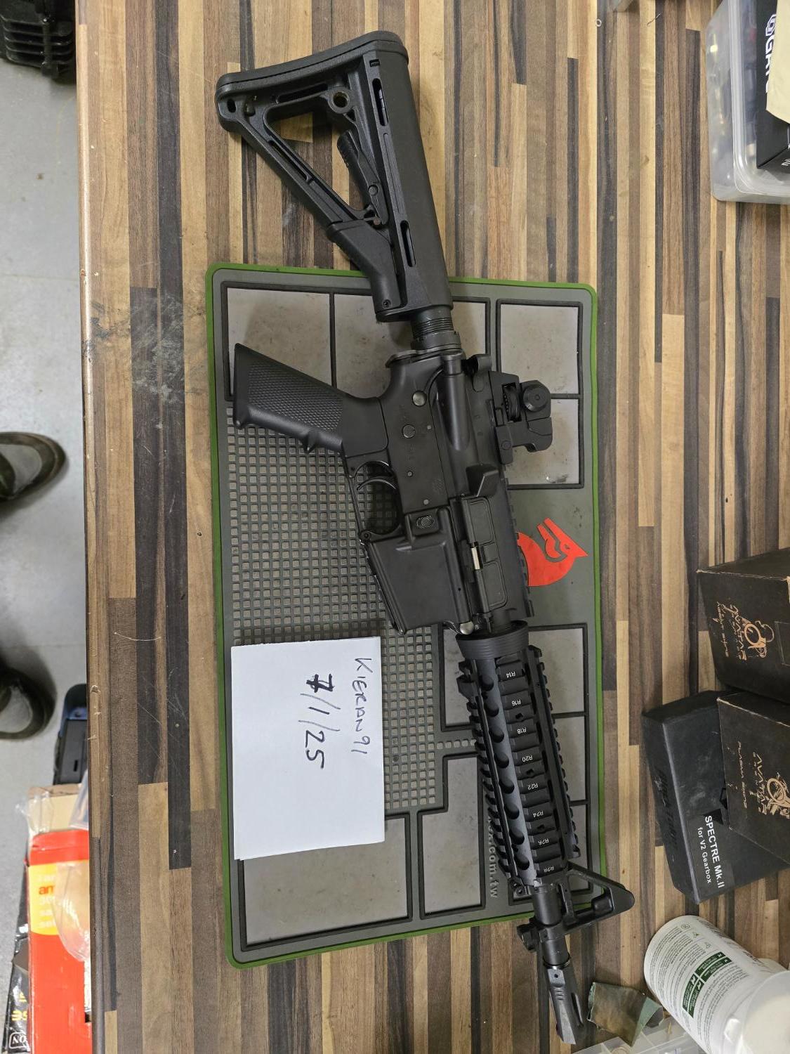 Tokyo Marui mws m4 with angry gun nozzle and upgraded springs, mapleleaf hop rubber and nub. Good working order and shoot really well. Reason for sale as have got an urgi mws.