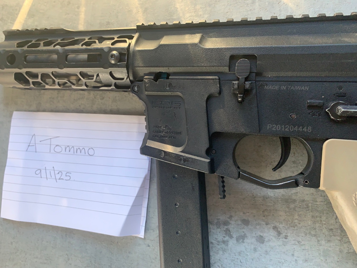 Selling this ARP9 bodied aeg. Don’t know much about the RIF as came to me in a bundle deal. Shoots at 265 fps with 0.2g on my chrono with a 7.4 lipo. Sounds to be well shimmed (not screaming). Think it is a switch trigger as feels as though it clicks at end of trigger pull. Gearbox and internals unknown. Deans connected.
