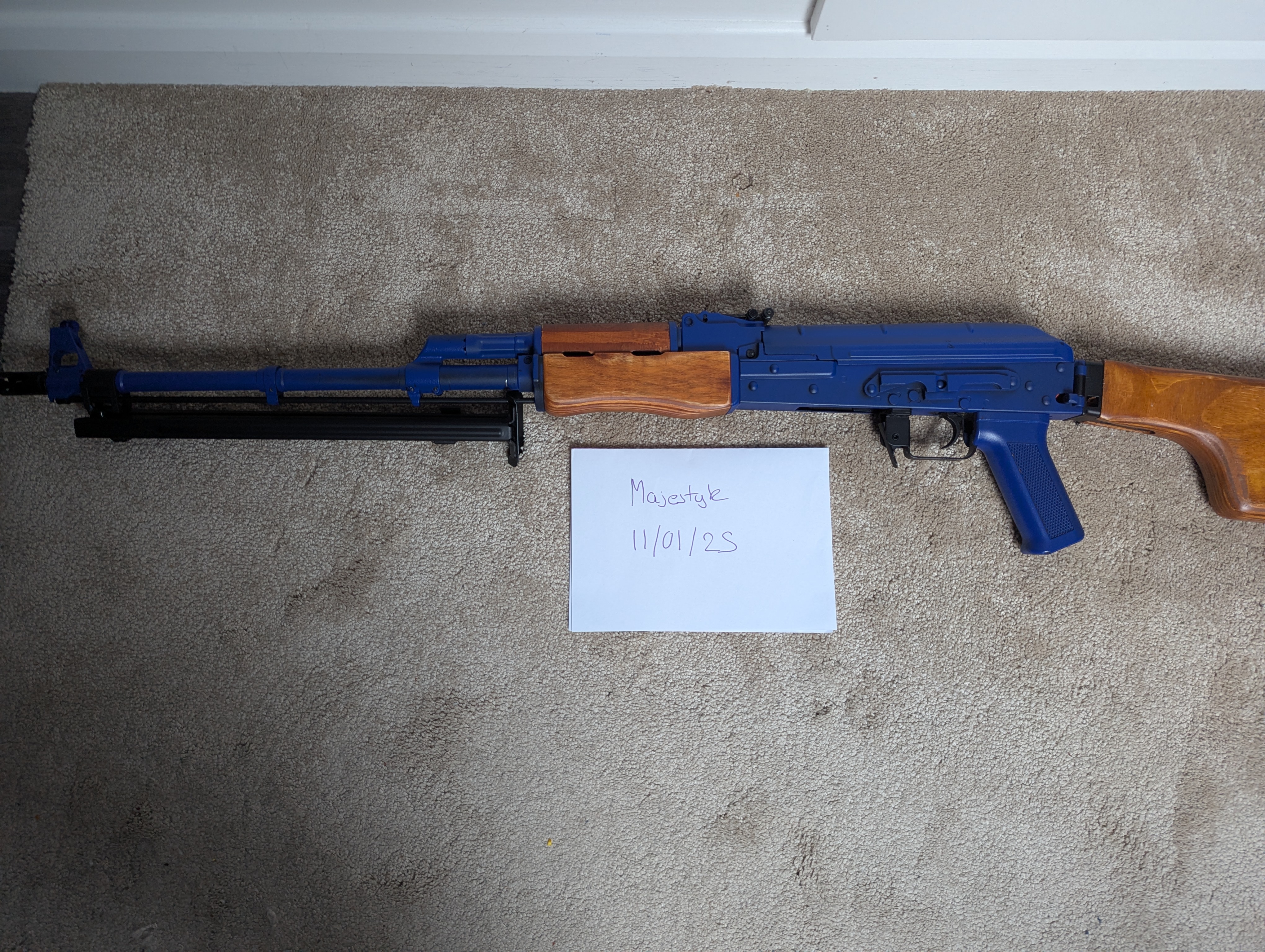 Bought this in this condition to use the receiver for a build but found a better one sperately so don't need this anymore. It has a dead motor/wiring and one side of the front sight protective wings is missing, stock and bipod function as intended. Paint is wearing off. I will include the original mag but don't have the box anymore. Price inclues Postage & PayPal G&S fees.