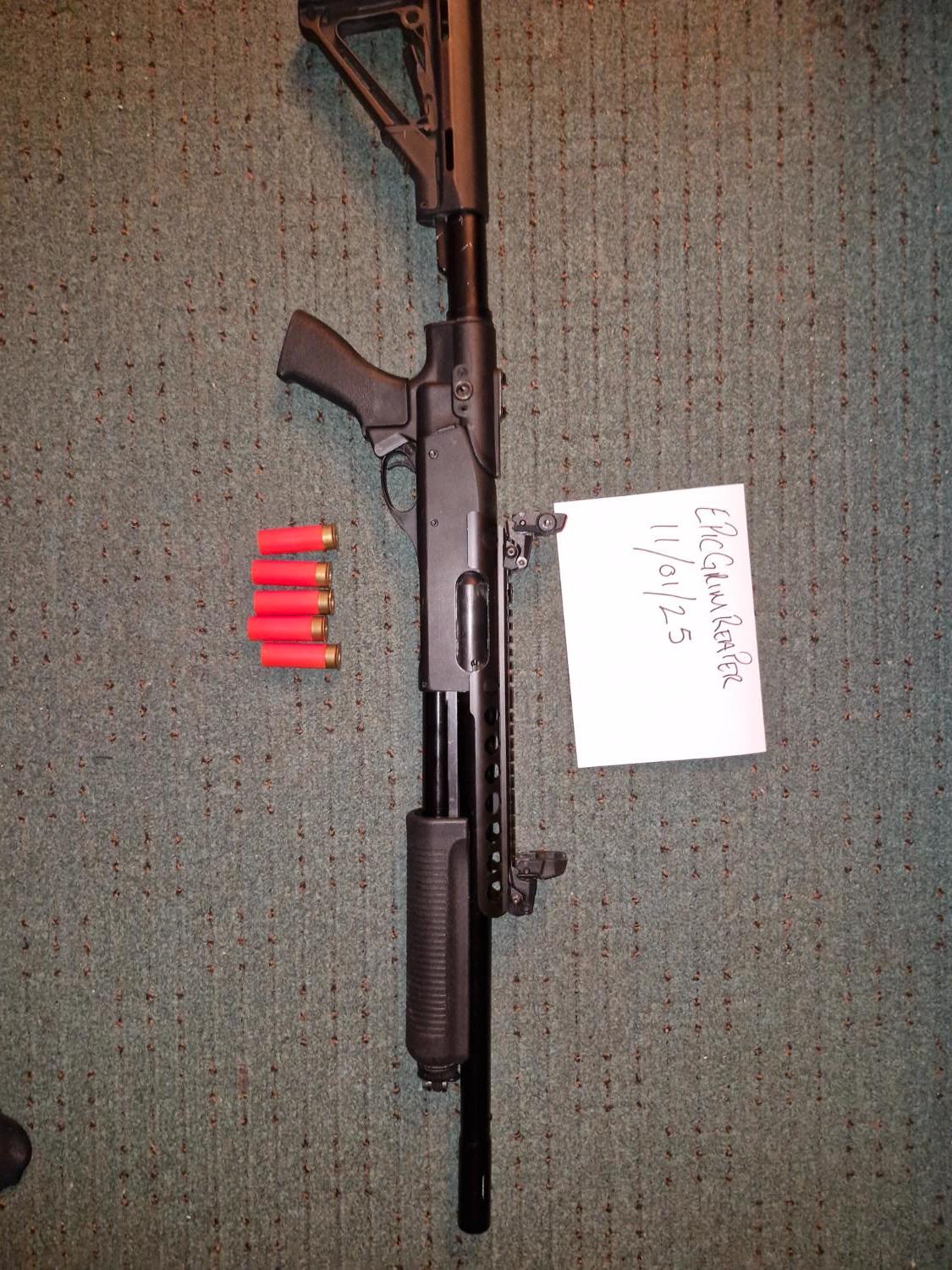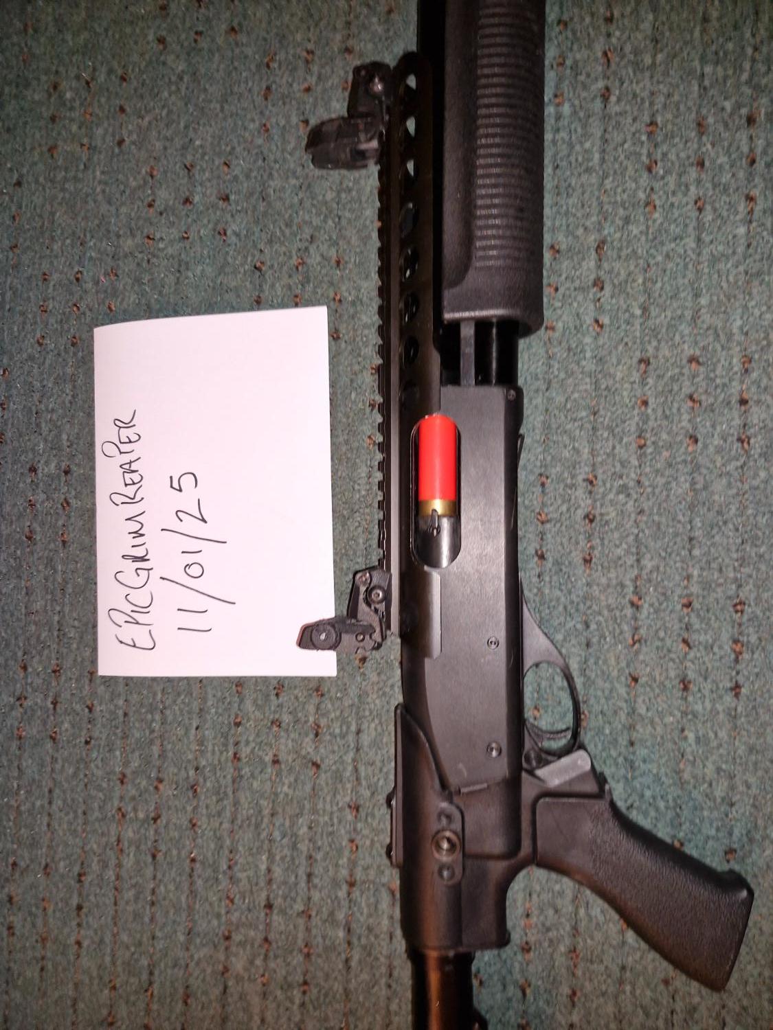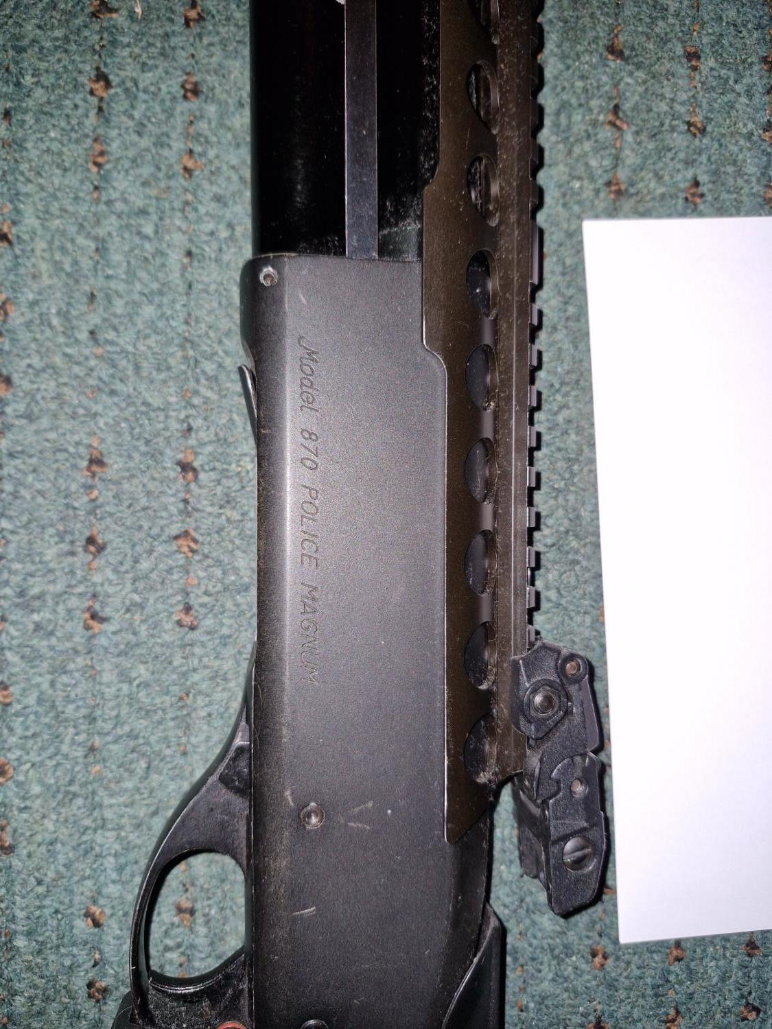 Pps m870 tactical police pump shotgun with 5 shells in good condition never fielded plinked in the garden shells a bit fidly to gas up so used as a walhanger but does shoot if wanted to field it comes with flip sites has top mounted picatiny rail to ad a red dot site adjustable m4 style stock has solid black stock also now added so the m4 style is off but included