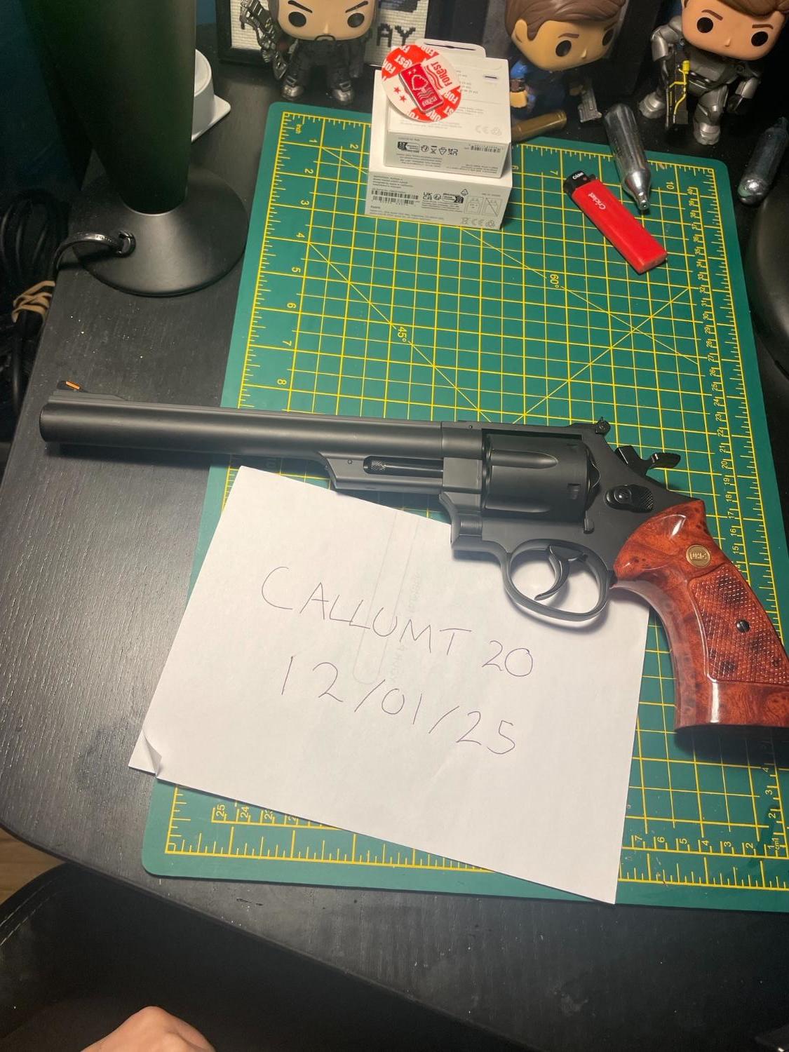 I've recently moved away from collecting airsoft so I'm selling up most of my stuff, here we have a UHC M29 with an 8 Inch Barrel, the pistol is entirely plastic, so be careful with it! Looks really nice and sits well in the hand. I was genuinely surprised shooting this as I put a 0.20 in it expecting it to fire maybe 10-15 meters and it easily cleared 30 whilst still applying hop. 0.28 seems to be its preferred food and had some good fun plinking cans at 25 meters. I probably wouldn't risk taking this to a skirmish as it is relatively fragile.