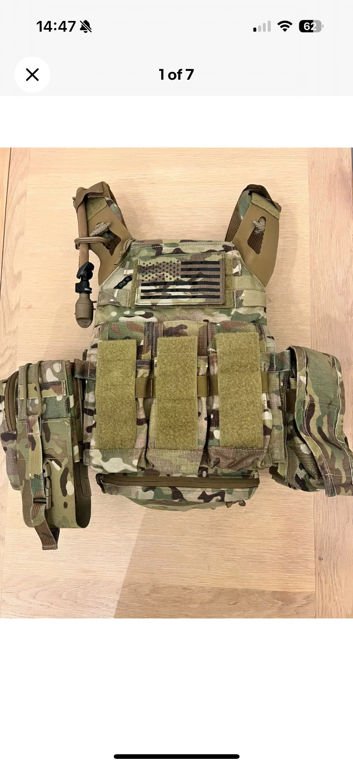 JPC 2.0 medium plate carrier complete setup. Used twice. Bfg mbtir radio pouch Spiritus systems sack pouch Spiritus medium gp pouch Crye side plate pouches + rubber inserts Haley flat pack Crye avs triple m4 C2r double m4 flap Jpc zipper mod flap Multicam shoulder pads Jpc 2.0 medium Foam plates Camelbak antidote 3L and hydration tube |