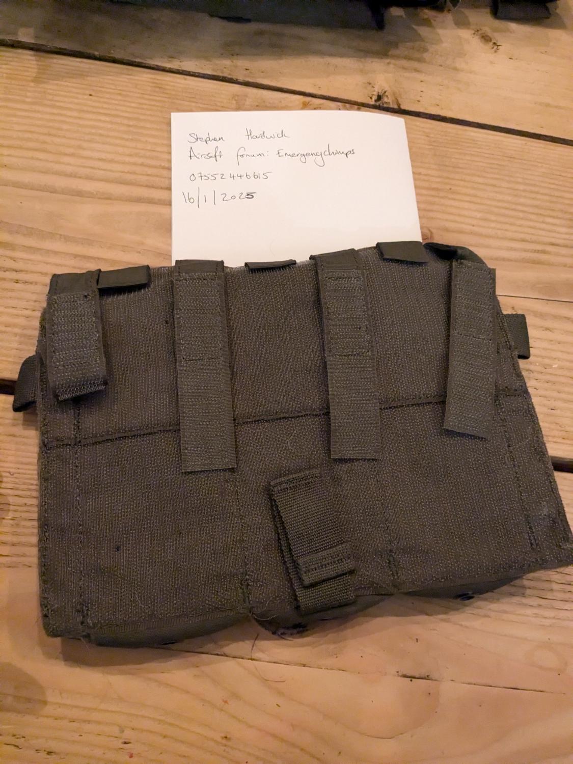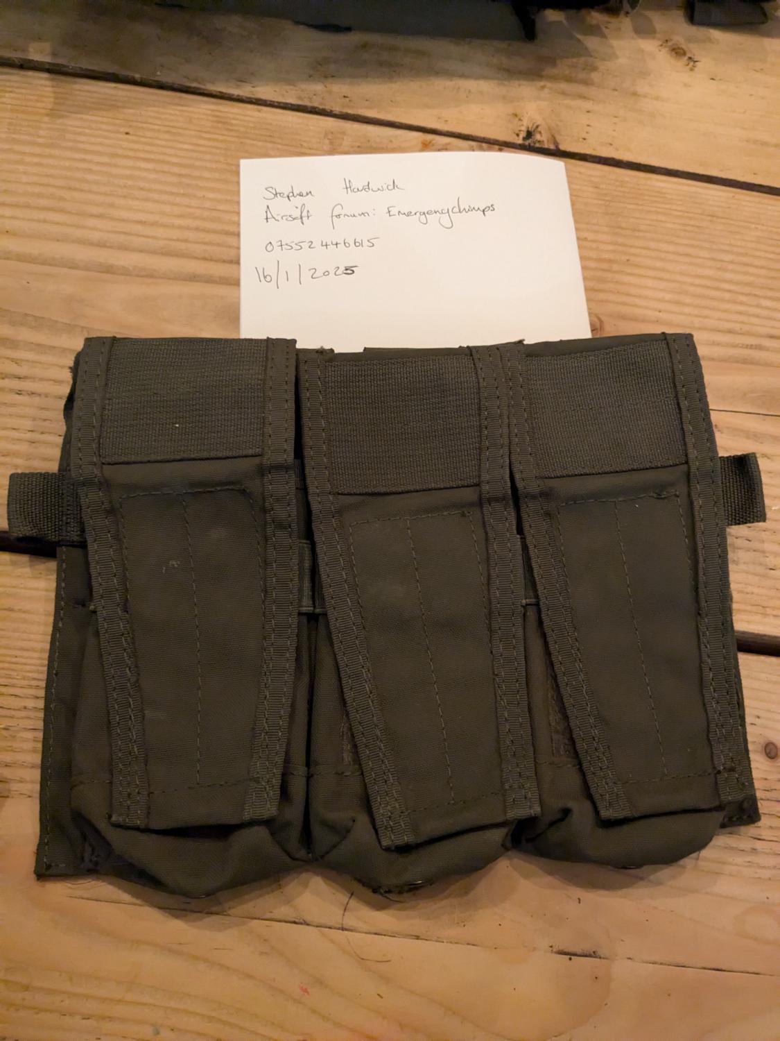Ranger green triple mag pouch, closed top. Unknown brand. I got it as part of a pretty Gucci plate carrier set up but I don't like closed top mag pouches. It could be a Gucci brand, it probably isn't and there aren't any tags.