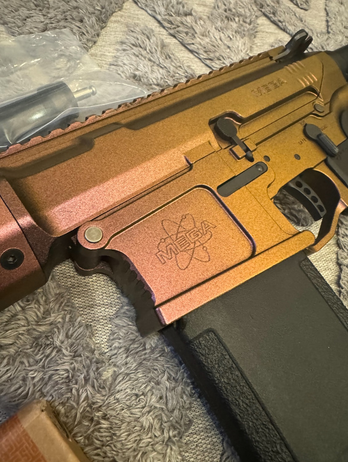 Has had barrel shortened and threaded, inner barrel shortened, handguard shortened, non adjustable lightweight stock, and painted in perfect pearls Sahara chameleon. Comes with 5 mags and a spare nozzle.