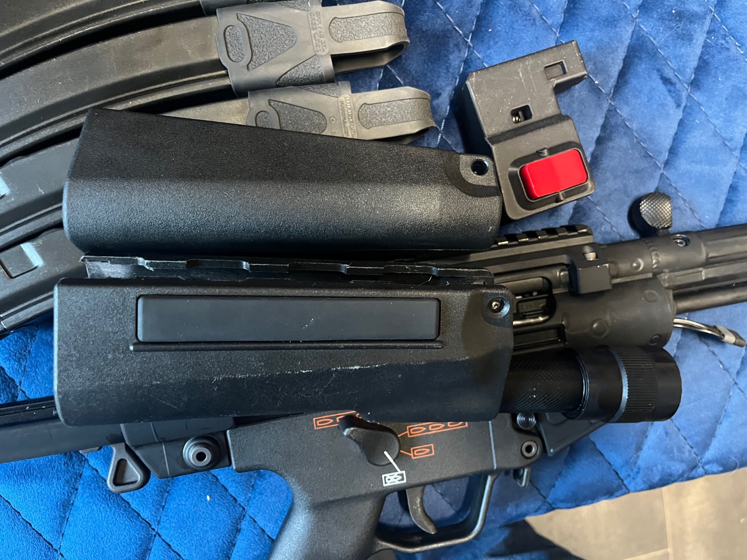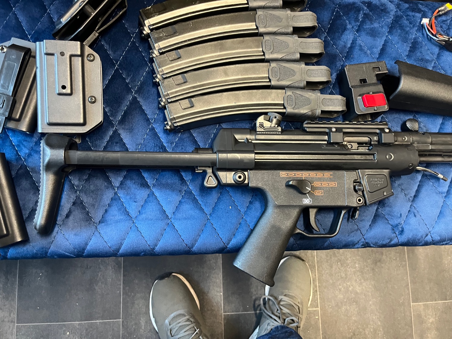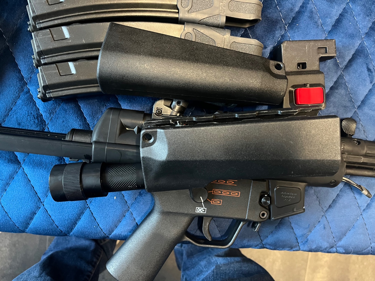 Tm mp5 A5 ngrs recently serviced and upgraded by Graeme at Tactical Geordies (December 24) have the Google drive to send to serious buyers. Comes with the following x4 Kydex magazine pouches, x 5 72 magazines all with the followers in tact. Airtac mp5 ngrs Odin adapter, x 3 7.4 1300 mah lipo batteries, original handguard, surefire style/clone/replica handguard. Claw mount for mounting optics.