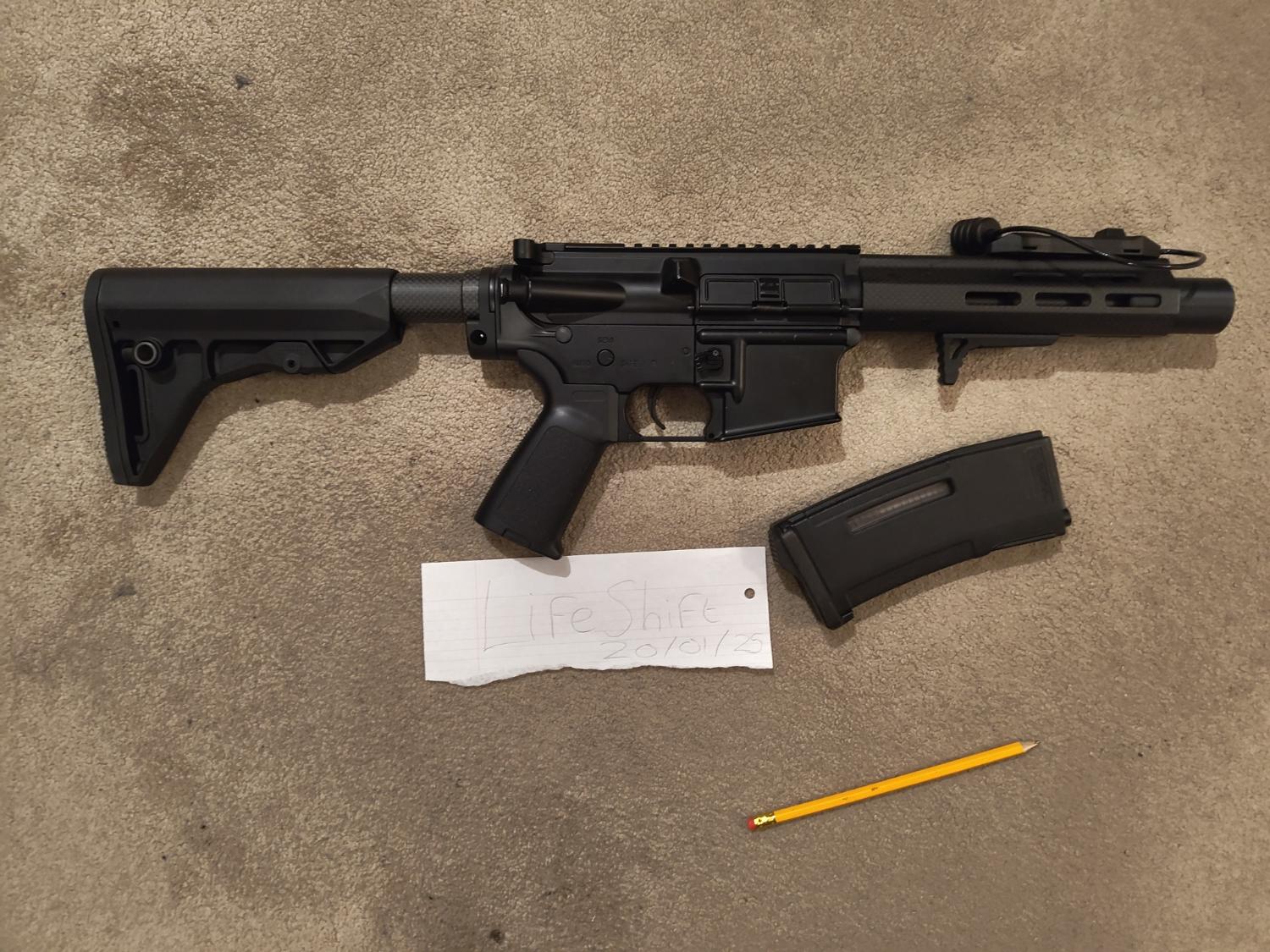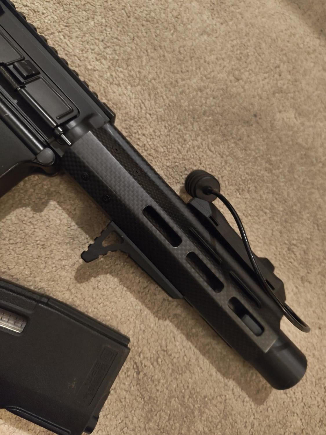 - carbon fibre handguard, outer barrel and extended stock all from laylax