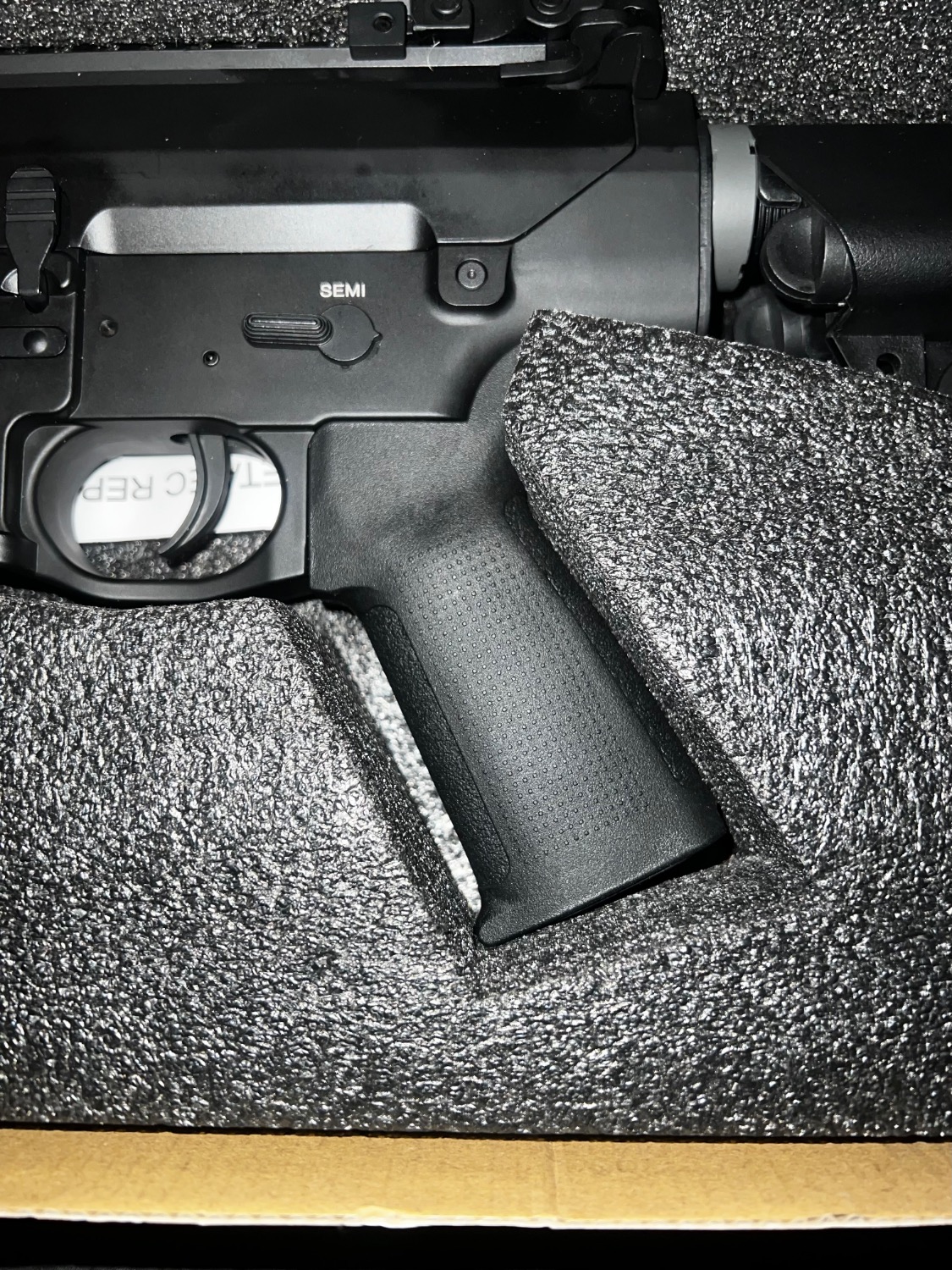 Pistol grip replaced with a PTS grip.