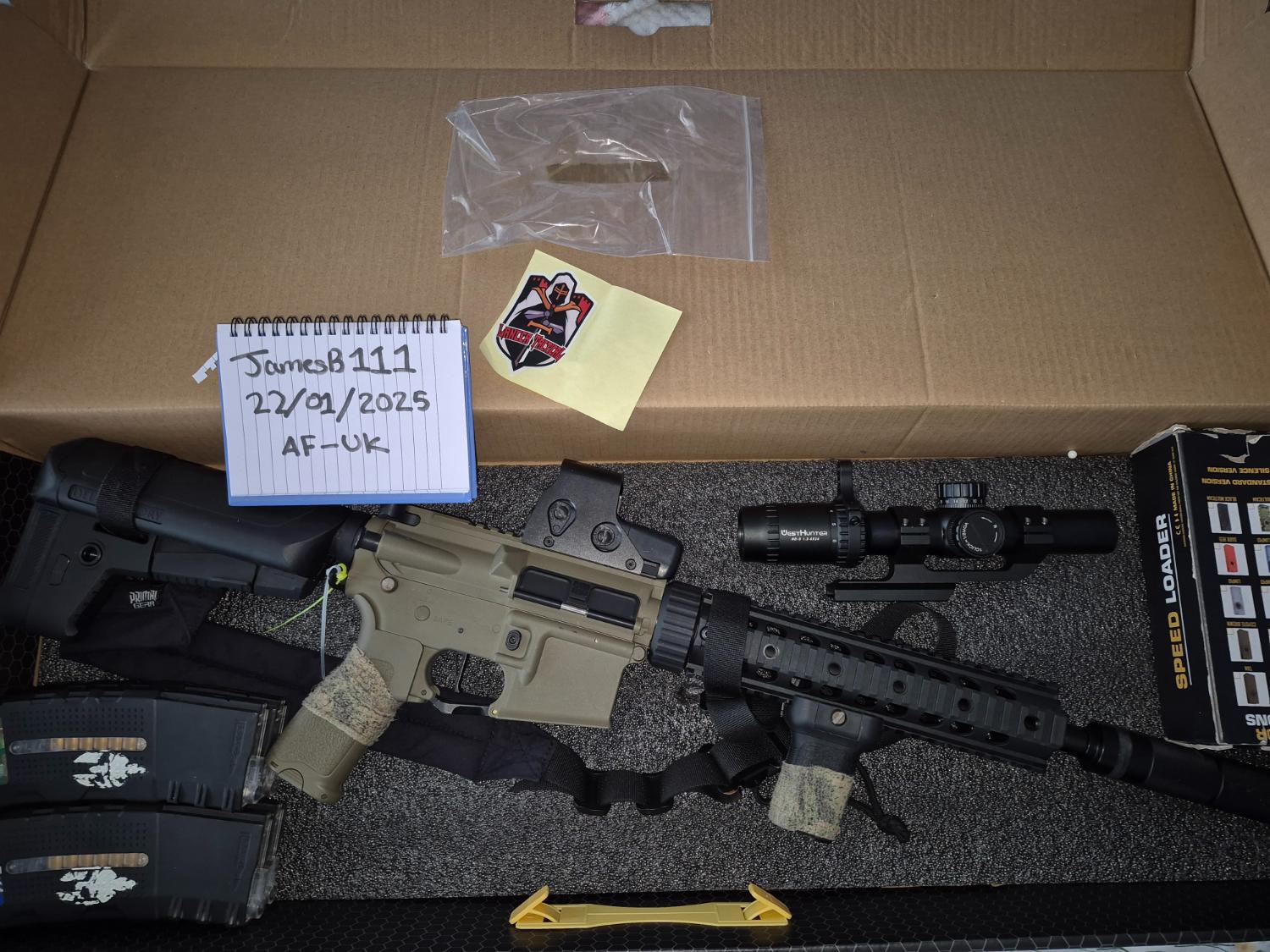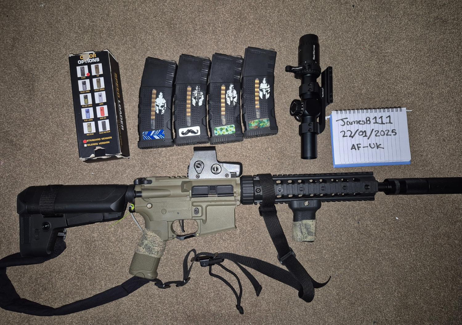 Selling as it is just collecting dust! and thinking of going gas guns only! Has been used well and heavily modified. Great starter gun!