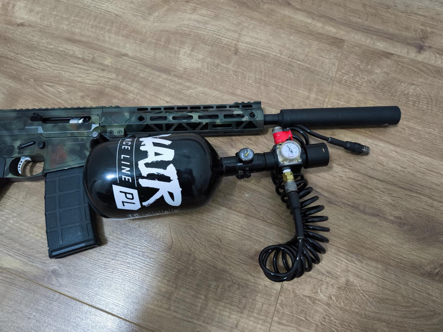 Powerair 68ci carbon tank ballistic reg with ballistic line. one hi cap nuprol mag.