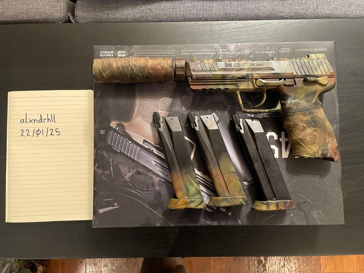 Have a Tokyo Marui HK45 Tactical available with 3 magazines.