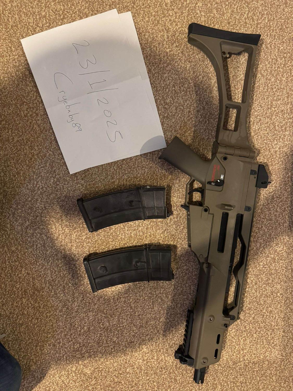 Army Armament G36C with 2 leak free mags, fires smooth and without issue. Owned for under a year. Open to offers, price is all in.