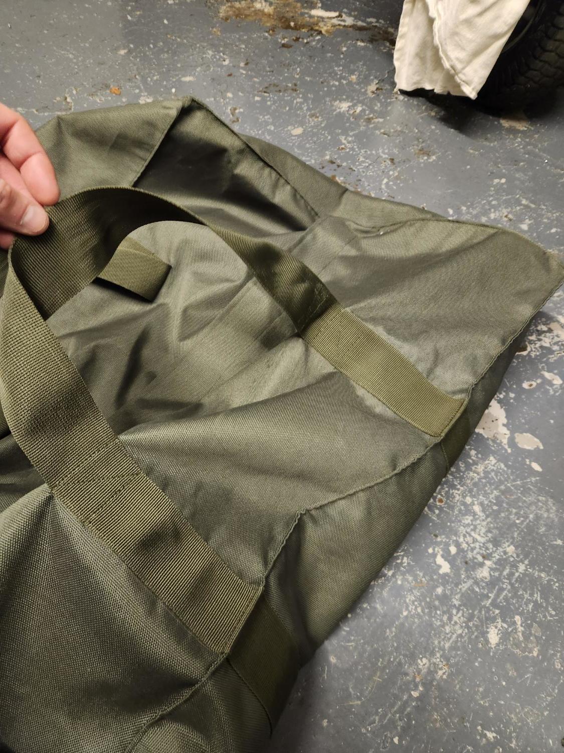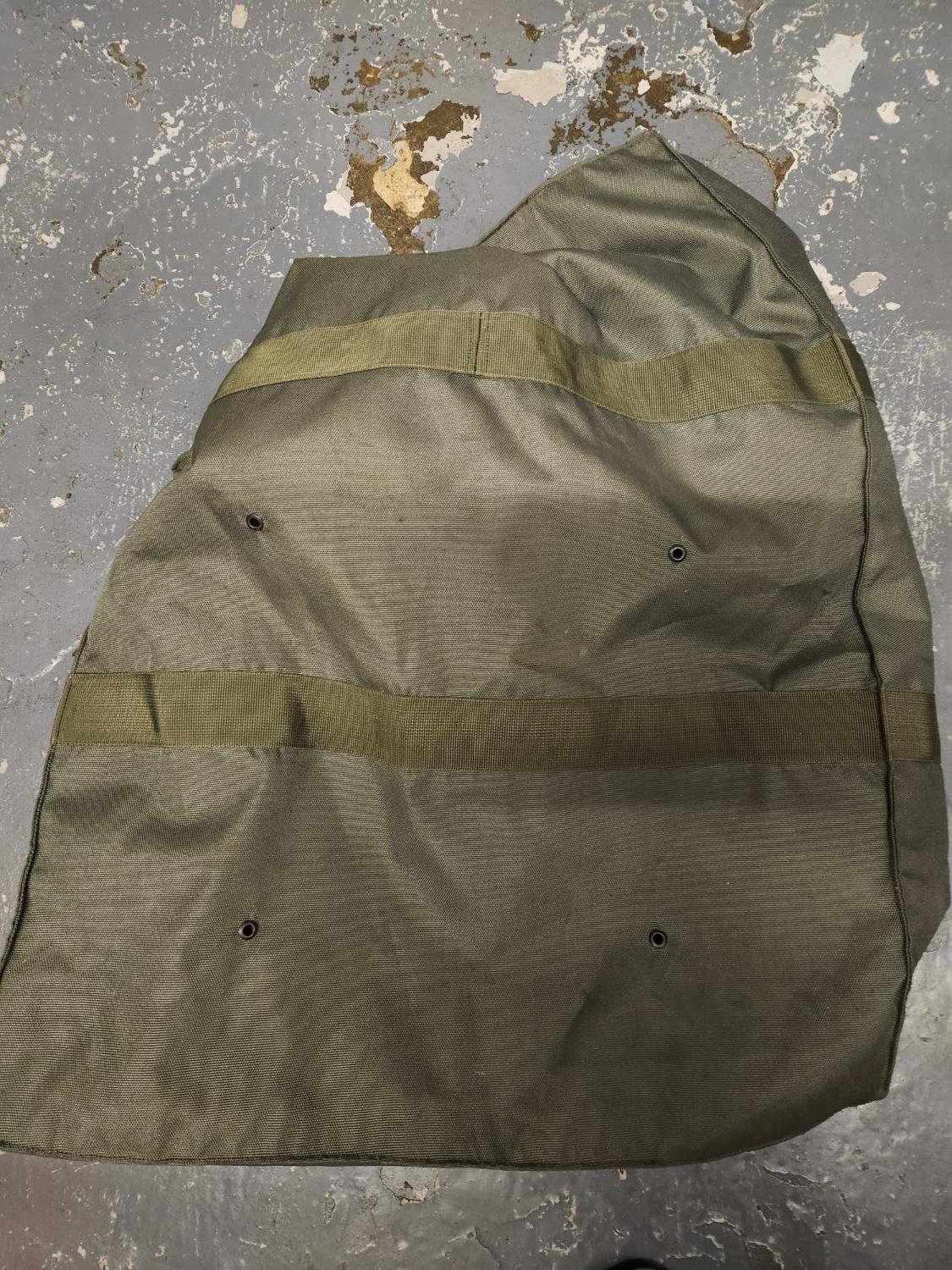 Large army surplus bag from wydean weaving, very well made, I actually had my airsoft mini gun in this!! I could do my "old painless" scene from predator ??