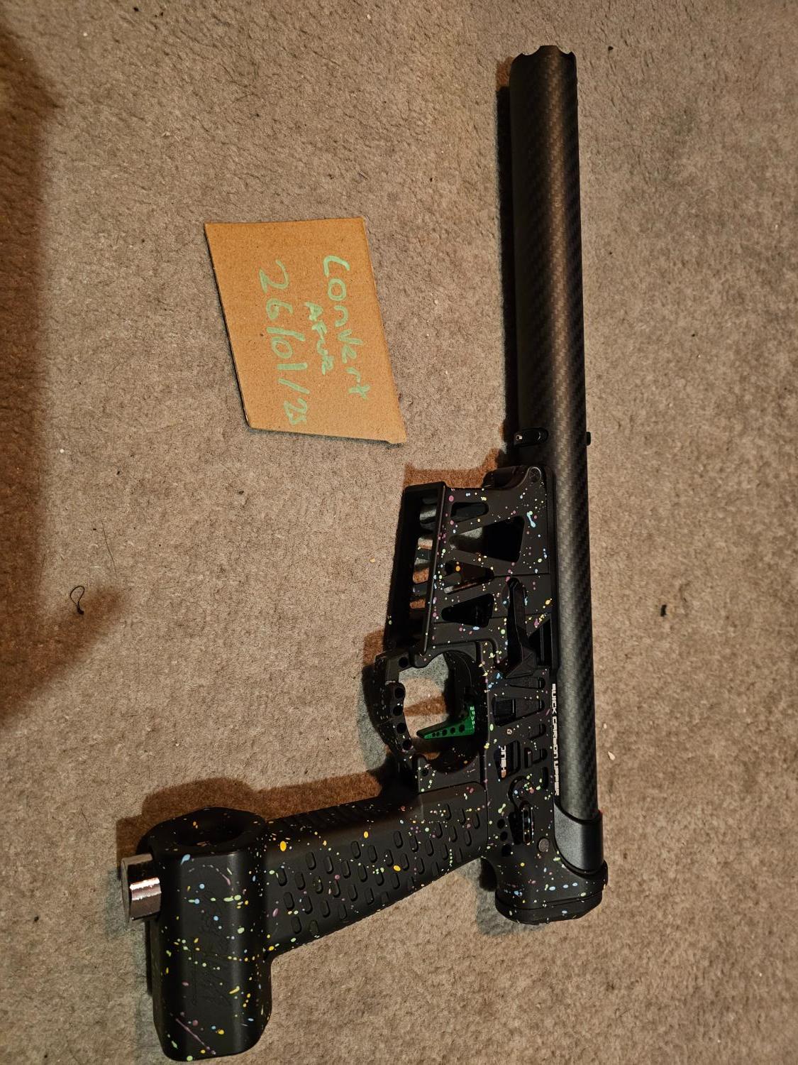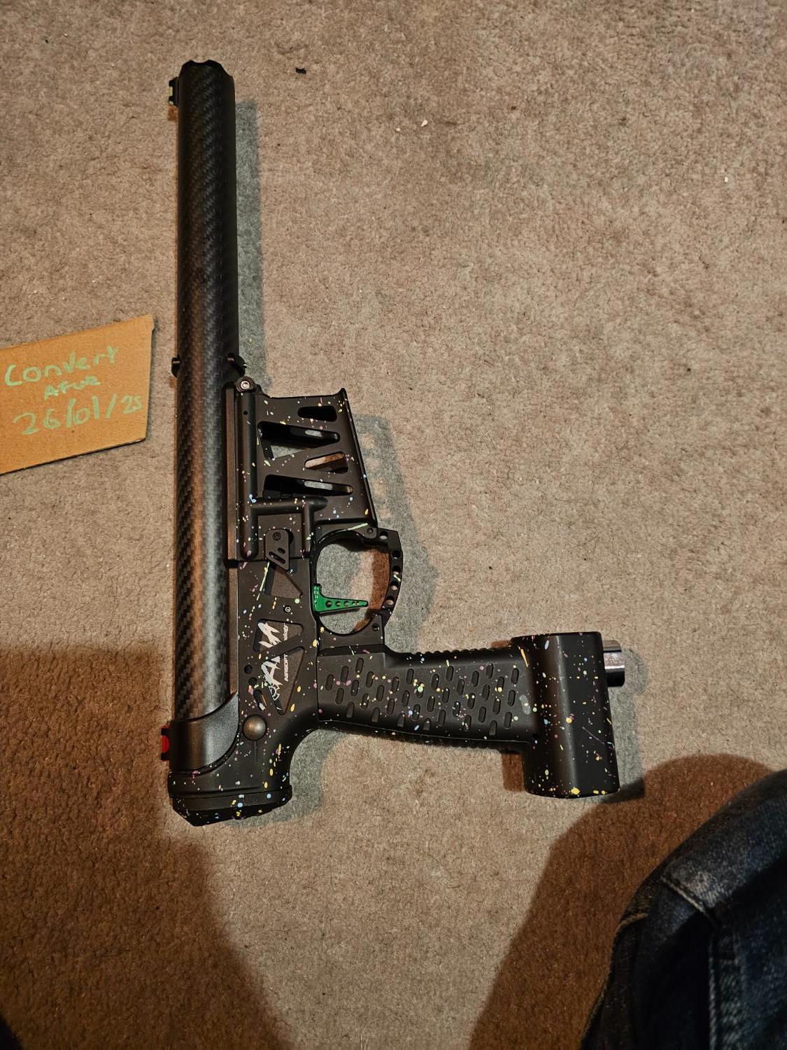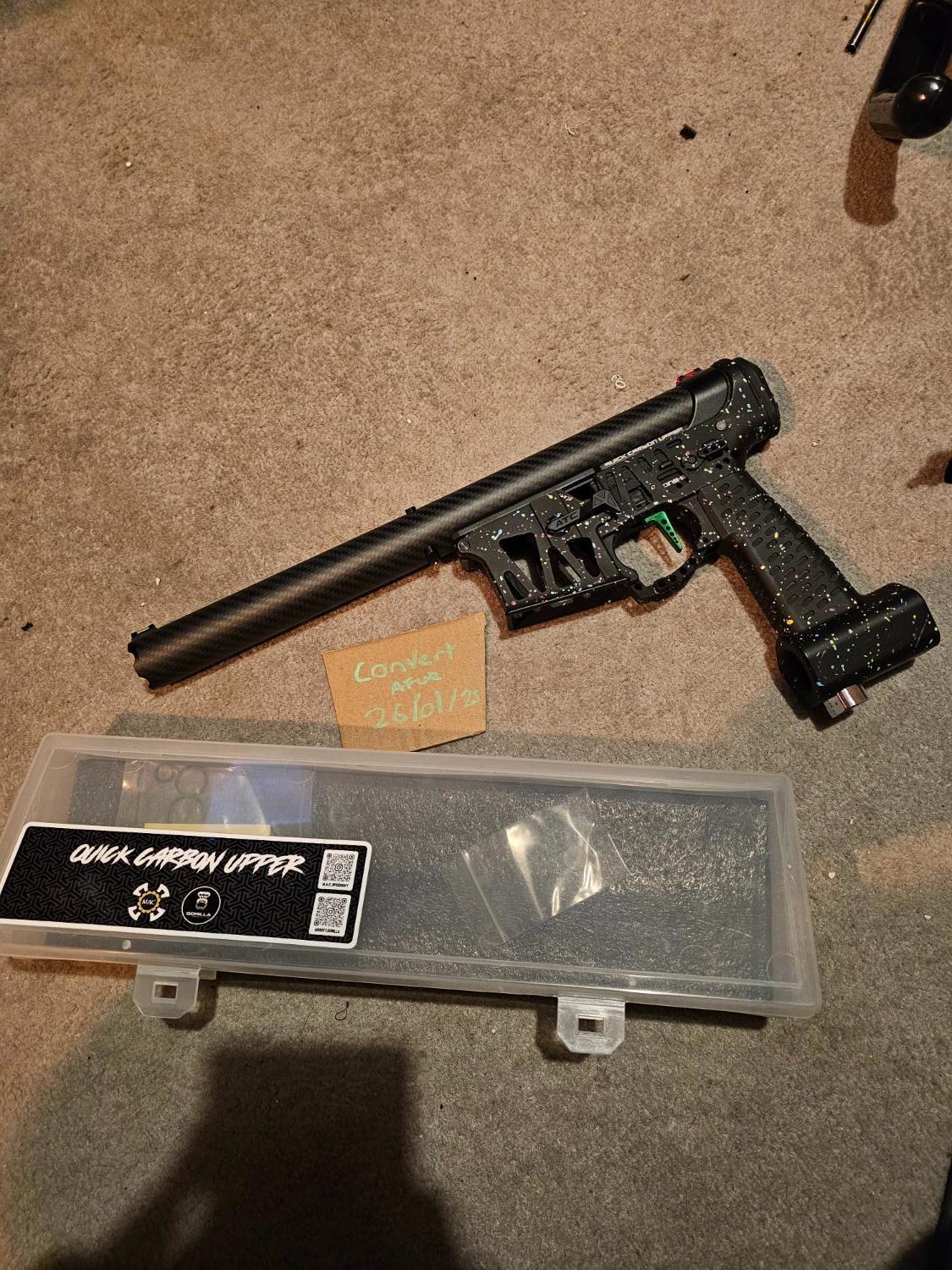 Hey, up for grabs is my MAC AIRSOFT QCU. Speckle Cerakoted. This thing is mental, the overhop and underhop toggles let you shoot round corners or bang heads while they are behind a barrier. I've reduced the price significantly as I have some things I need the money for rapidly.