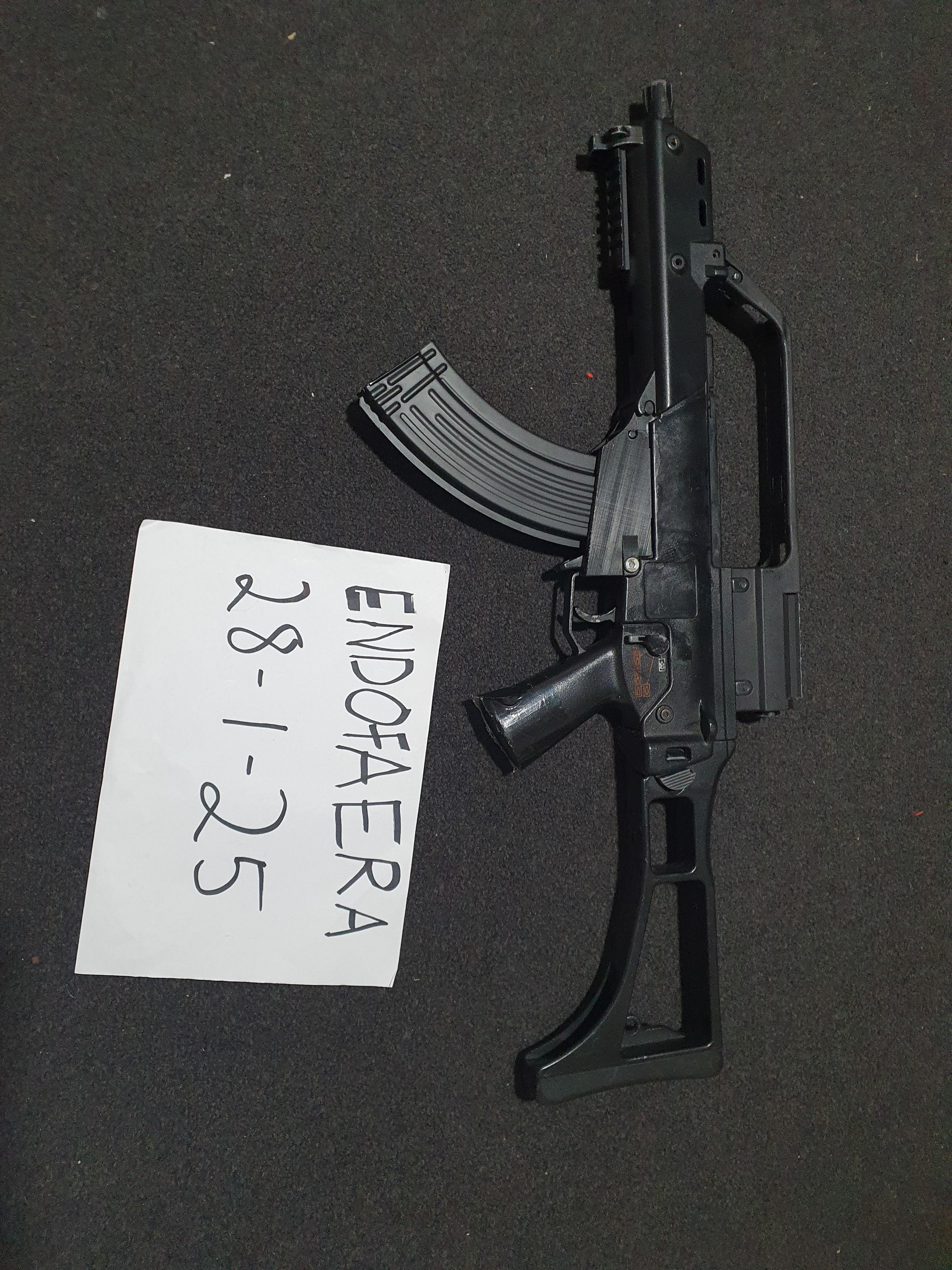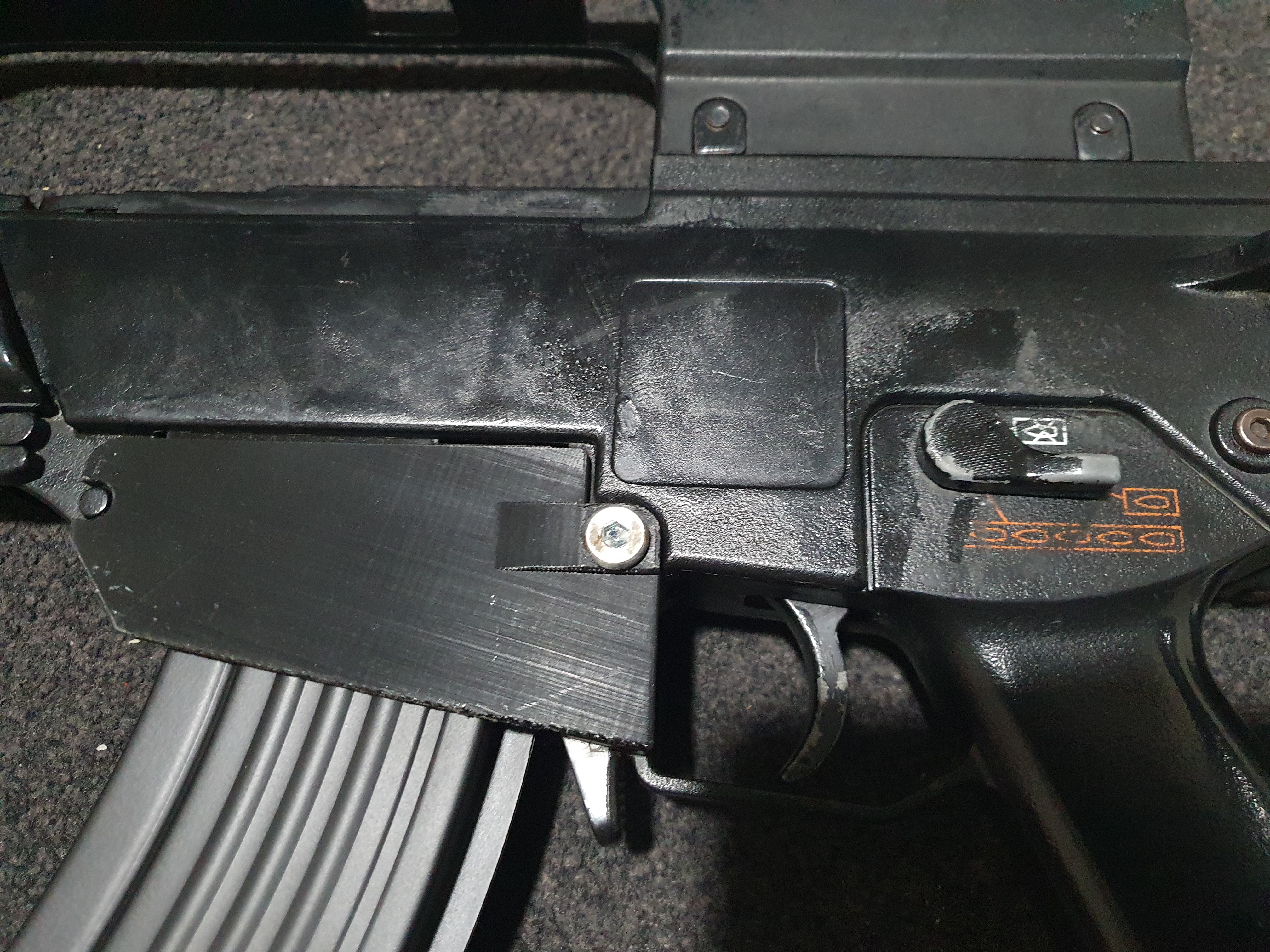 I think its stripped a piston or a gear or the motor, maybe the motor has dropped, i dont know and i dont care. I got this to lend to a friend when they come along but thats no longer a option so its to someone that will give it the love and attention it requires ? looks like the top rail is blue underneath, and its got duct tape around the handle, i dont want to know whats happening under there and the scope seems to have no magnification ? comes 3d printed ak magwell, with a new ak mag, i brought that for it so no more g36 mags with nibs and grooves jn the side, just nice smooth high capacity mags ?