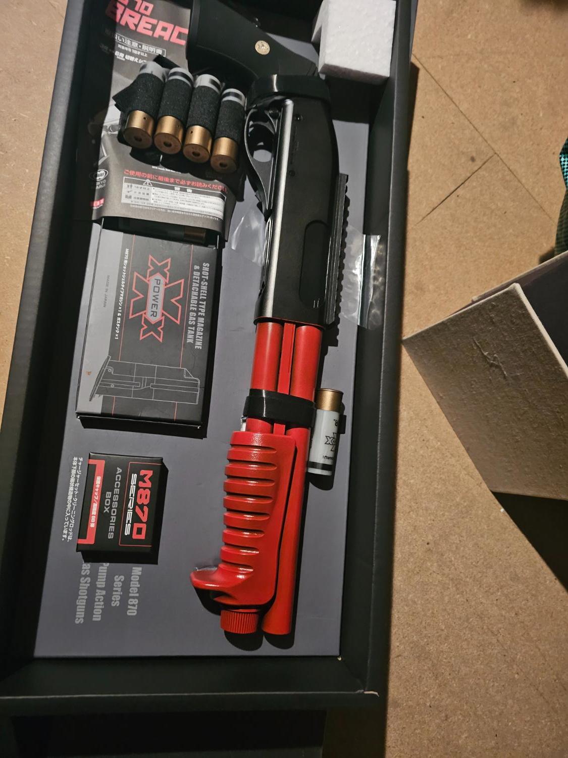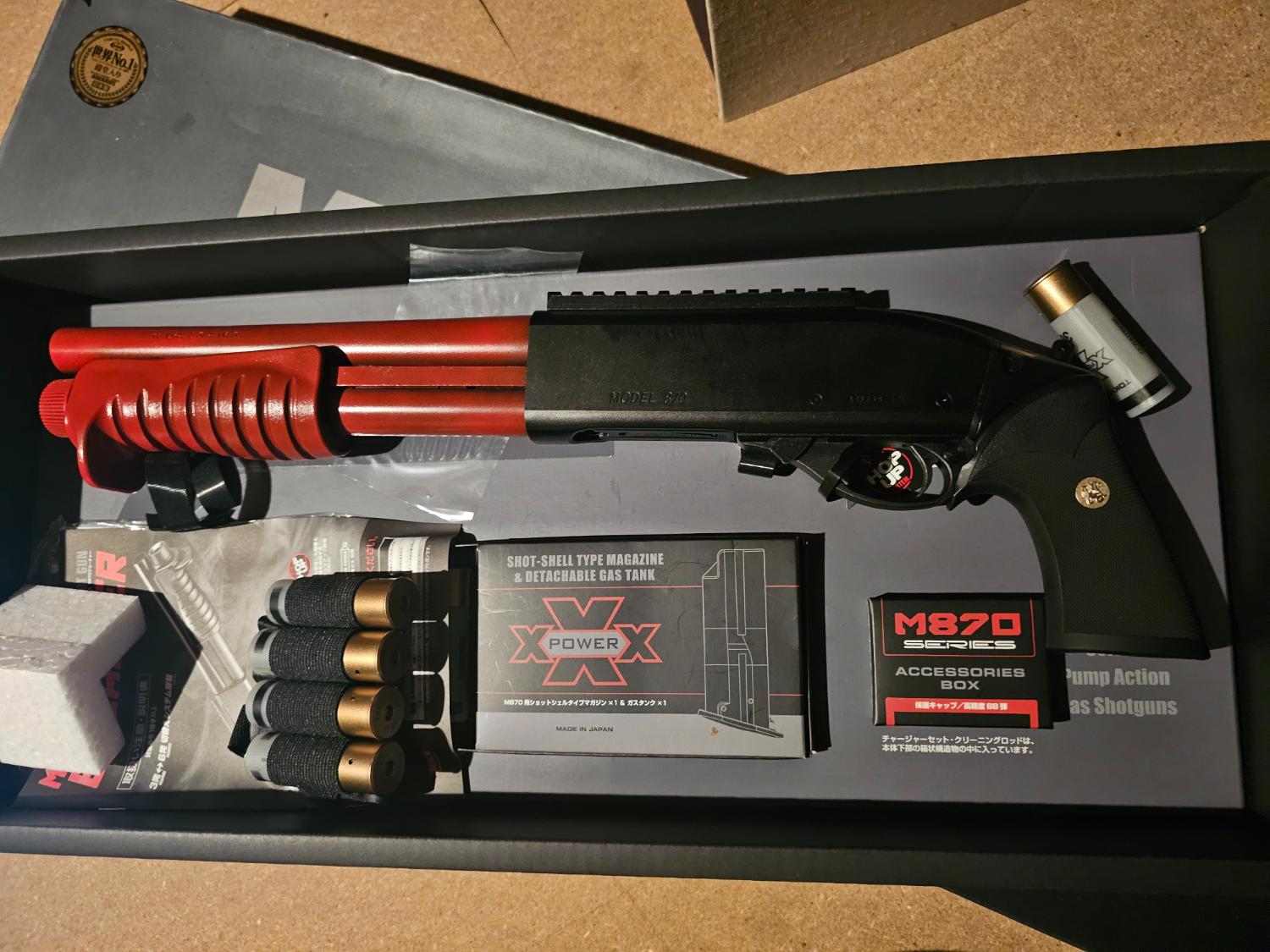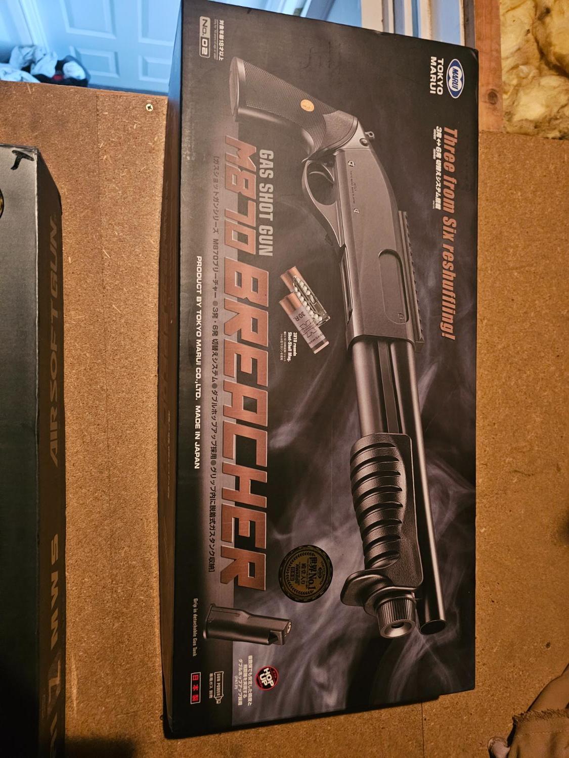 Tokyo Marui M870 Breacher Gas Shotgun with spare barrels