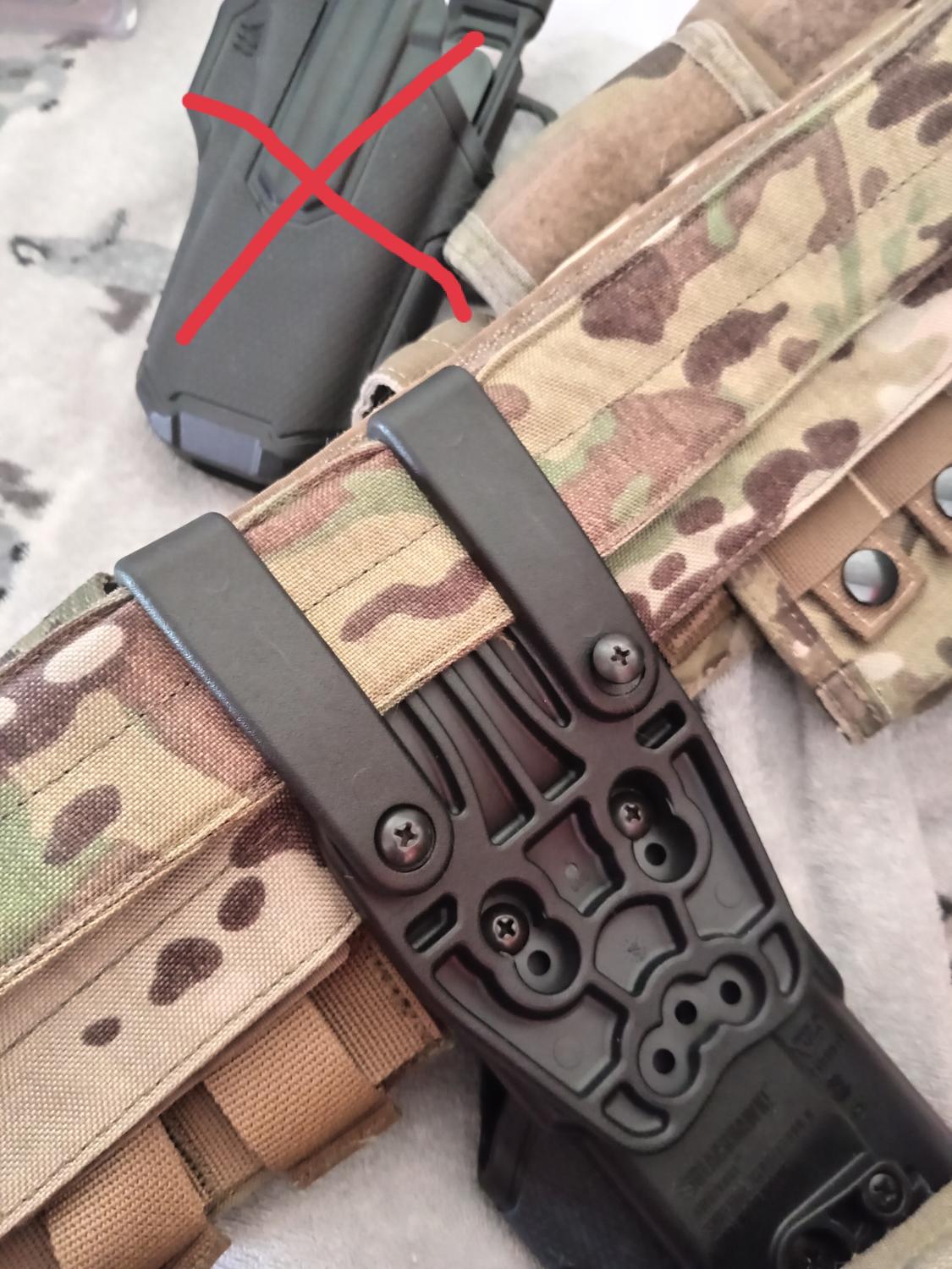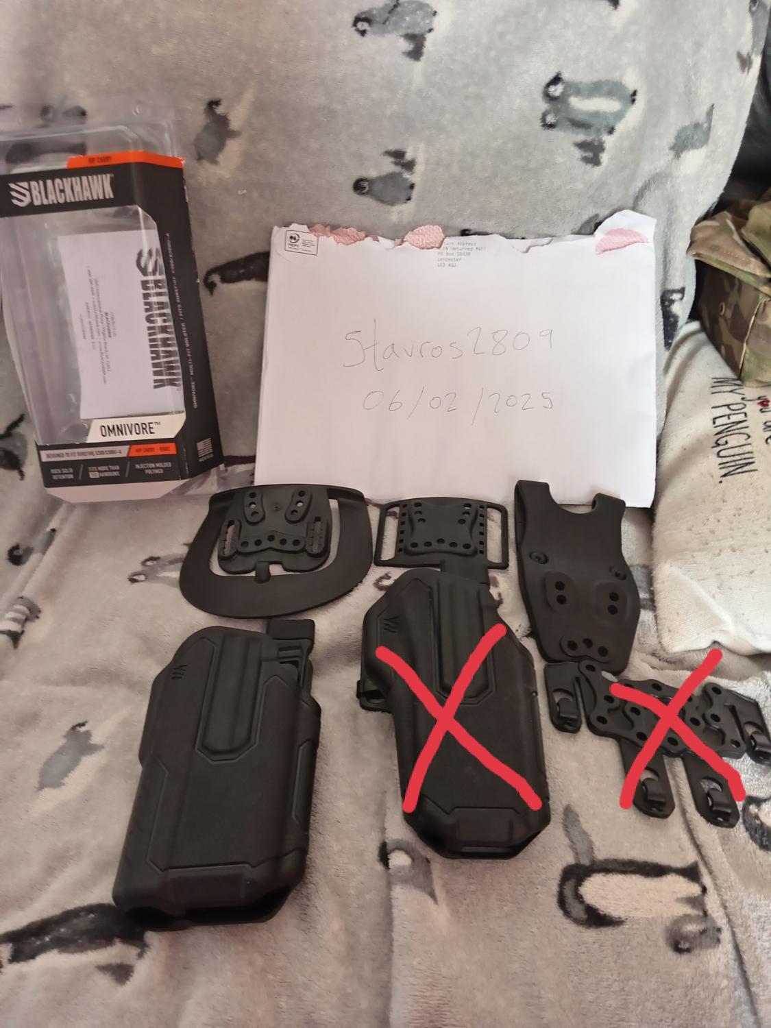 Blackhawk Omnivore Universal Holsters light bearing (Surefire x300/u) & non-light bearing (SOLD). CQC platform (SOLD) & Serpa jacket slot loop.