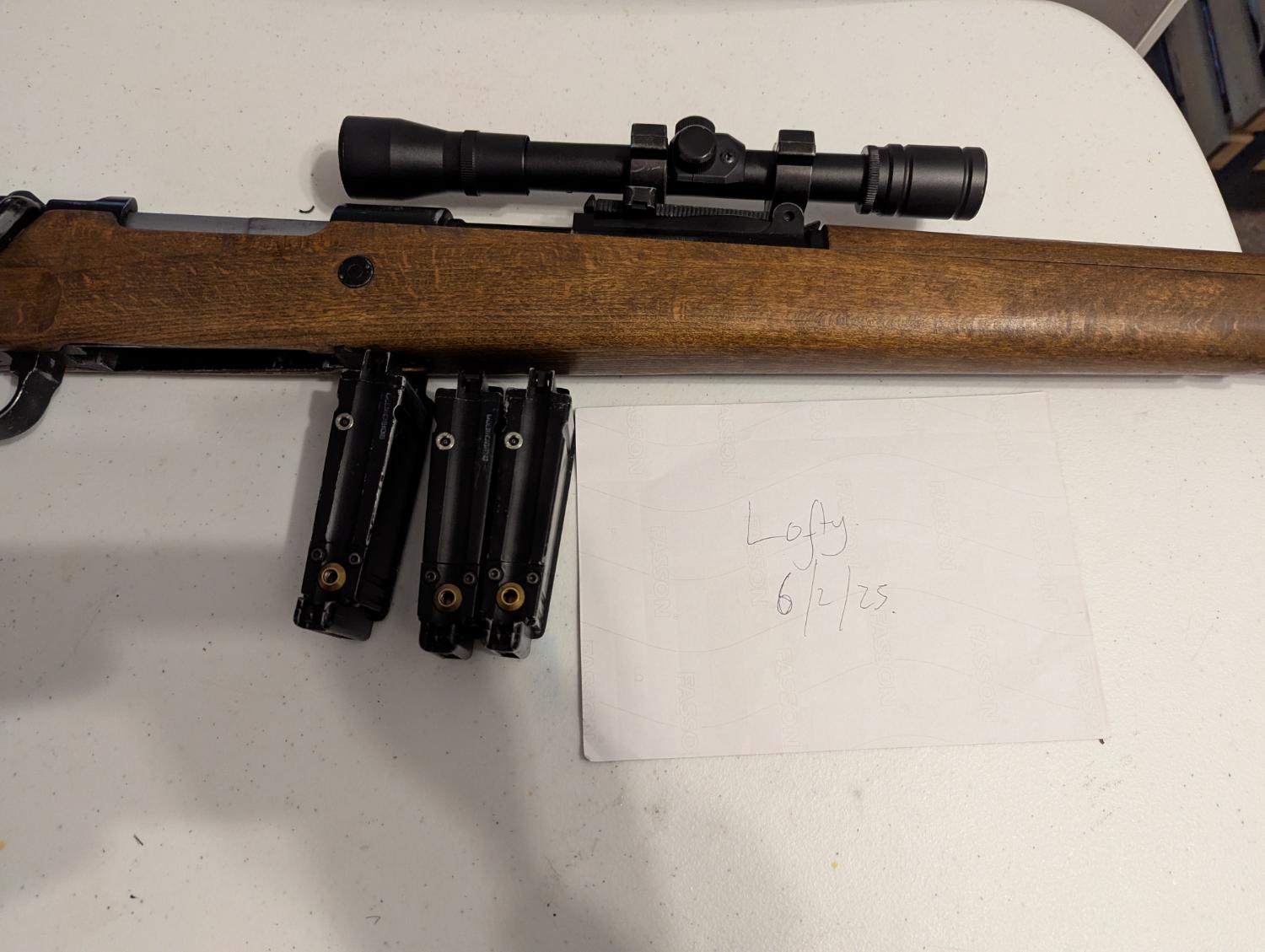One magazine needs a new spring for the gas release. Also need new hop up rubber it takes VSR type. Also needs a new front sight.