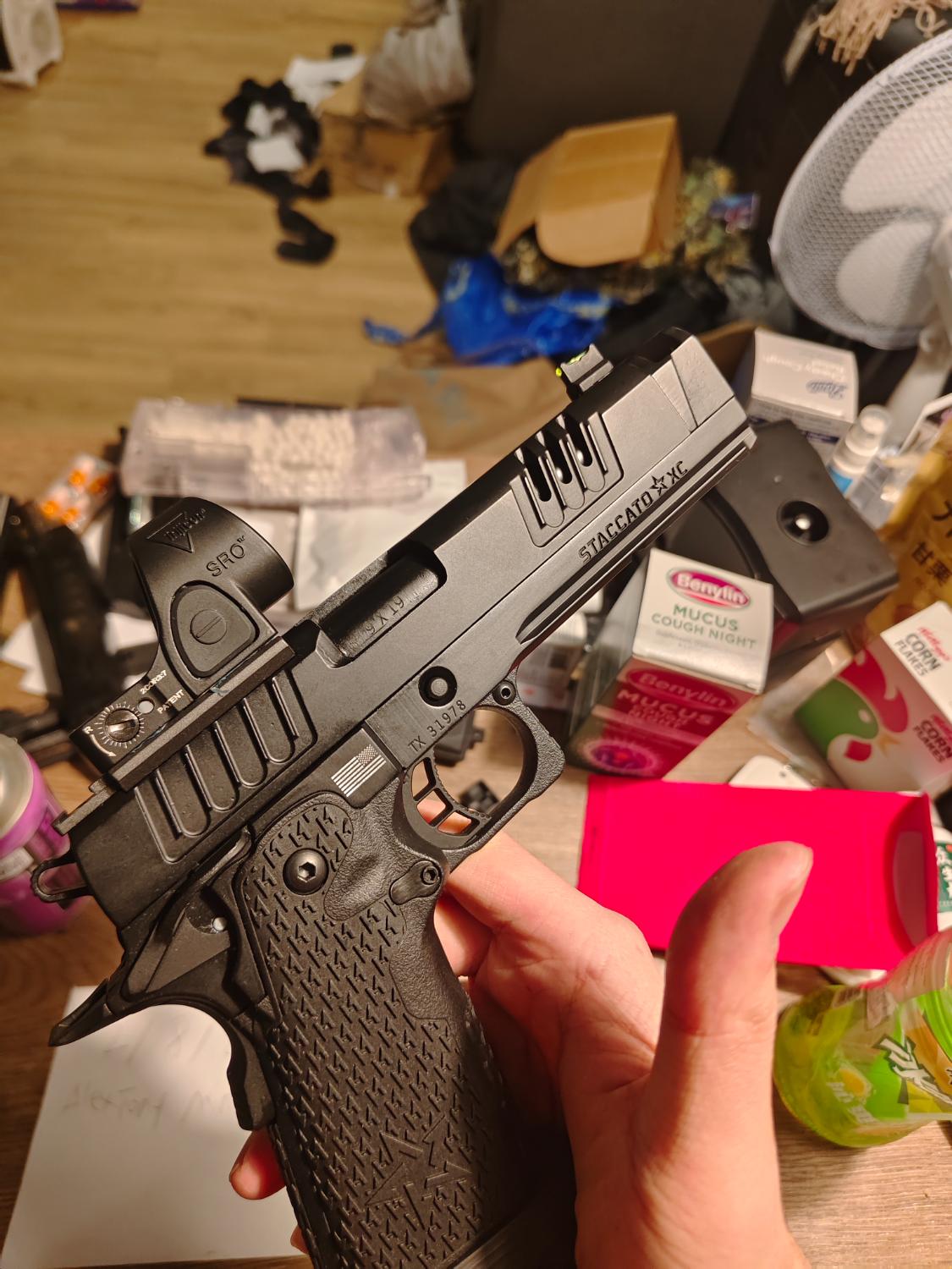 Brand new sro with staccato xc,it working perfectly. Comes with 1 leaks free mag. Sro red dot is full metal with Full marking. Using a new slide catch. Cause original one broken