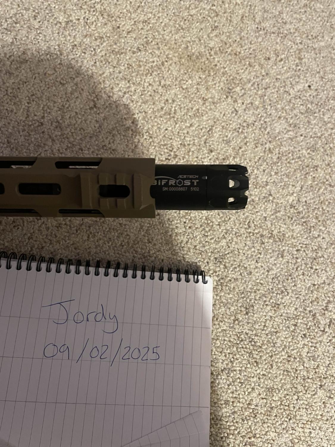 Has a Prommy bucking and nub, also an Airtech Studios Advanced R-HOP Arm & M-nub.