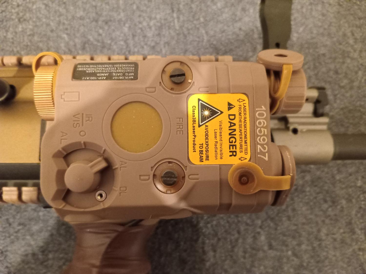 Fully working PEQ box (never tested the IR laser but everything else works) needs new battery. Can be used on the grip switch or on all the time.