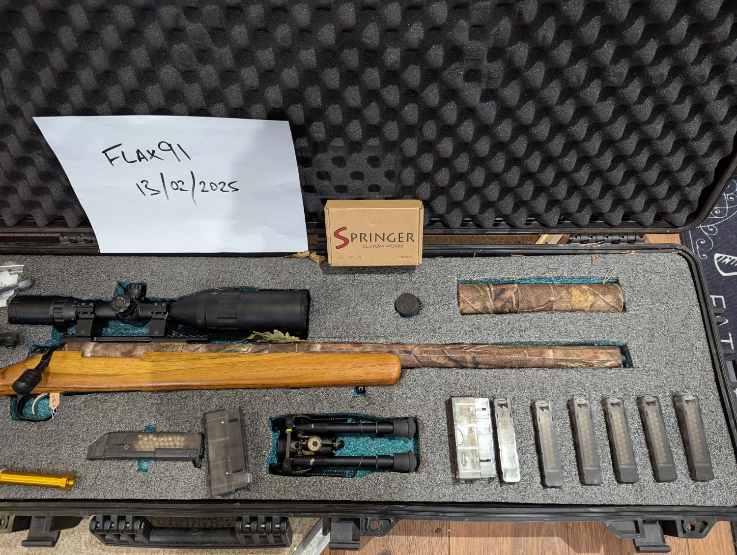 Selling on behalf of a friend who is giving up airsoft. Here is his Novritch SSG24. Here is a list of all that is included: