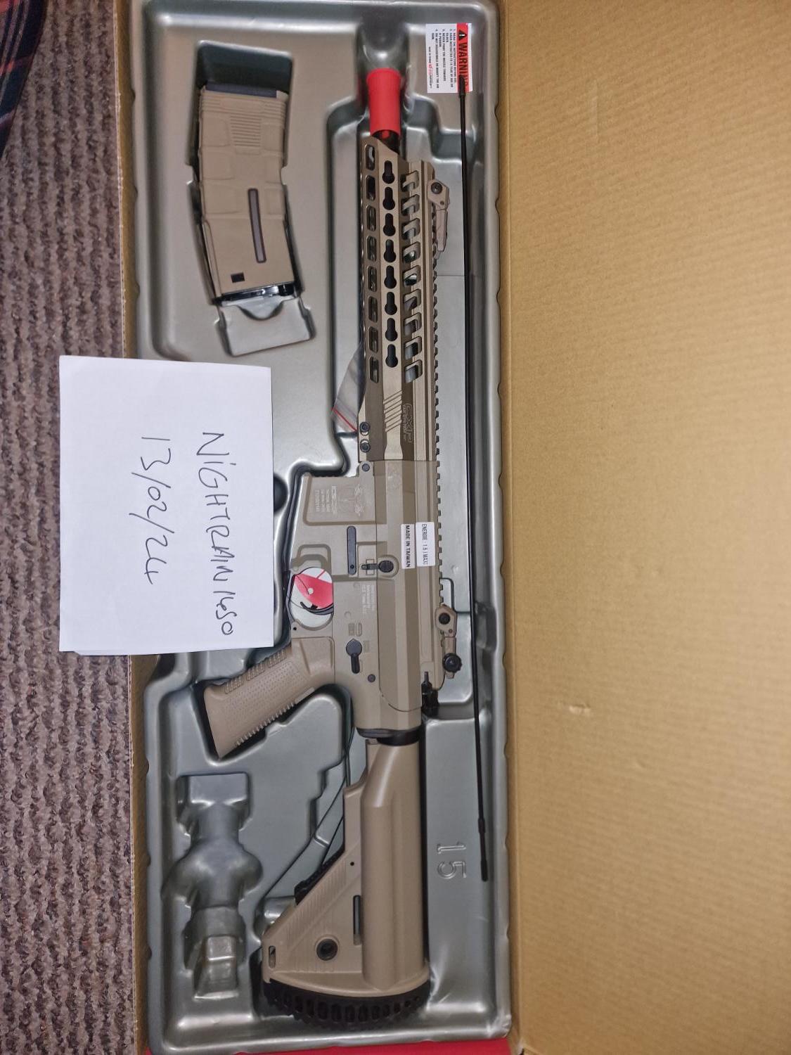 Tan colour, brand new never used. Got in a mystery box and dont need another M4.