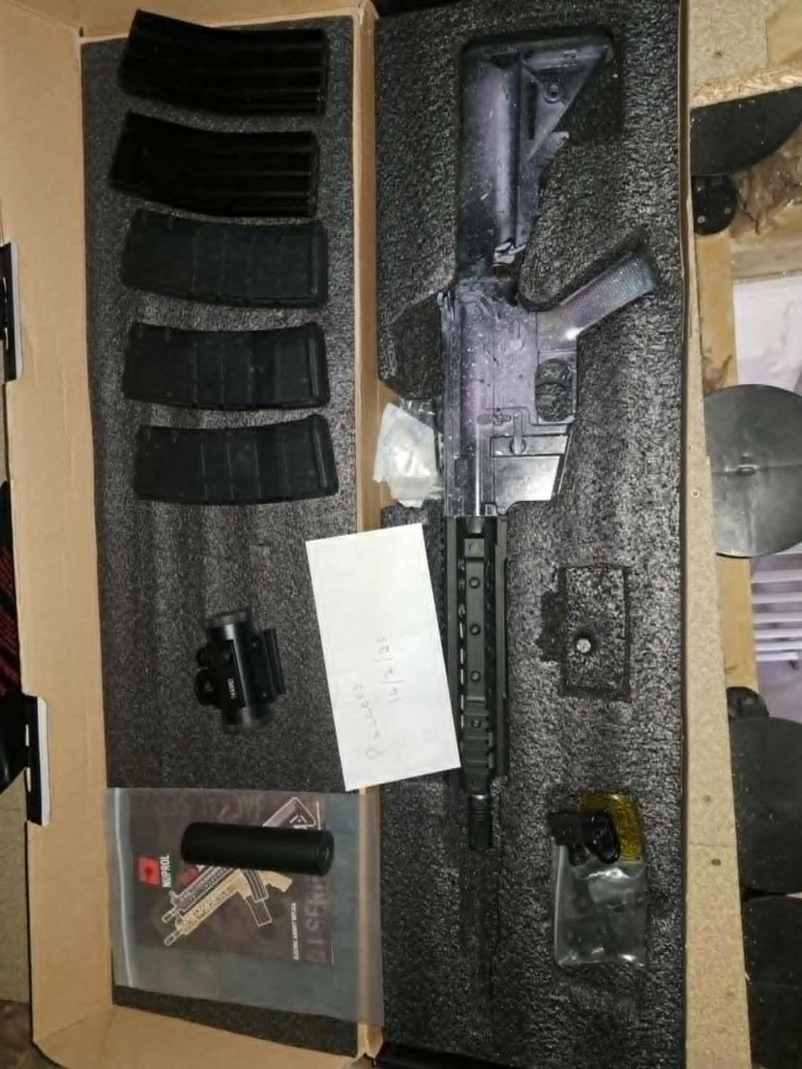5x mags, silencer, red dot sight, 2x 7.4v batteries