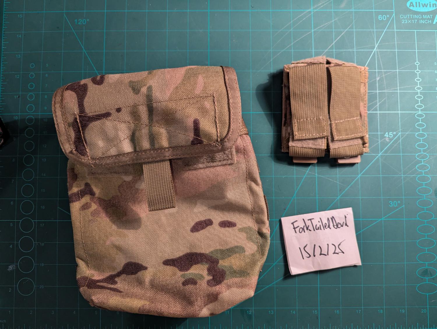 As new condition Tactical Tailor items come with malice clips. Will sell for £45 posted and paypalled together or £32 for the big pouch and £18 for the pistol pouch separately.