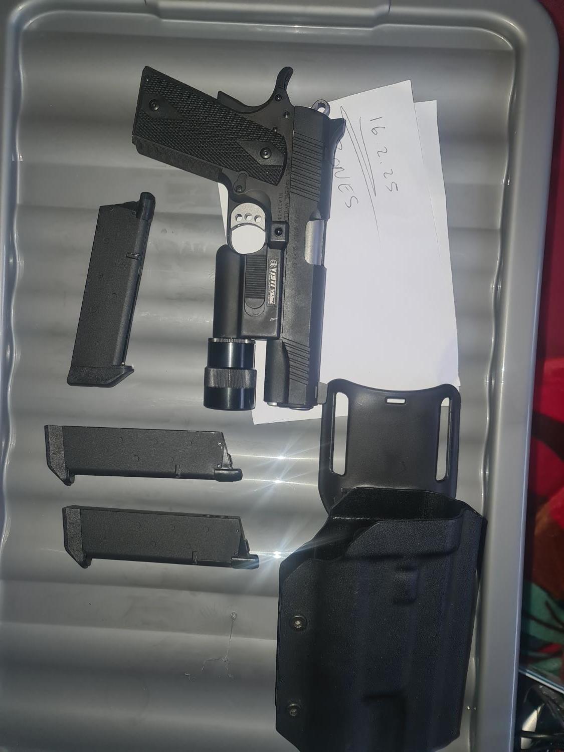 Up for sale is a vfc lapd kimber with vfc tac light and holster that fits both the gun and light . Also 2 extra mags all gas tight