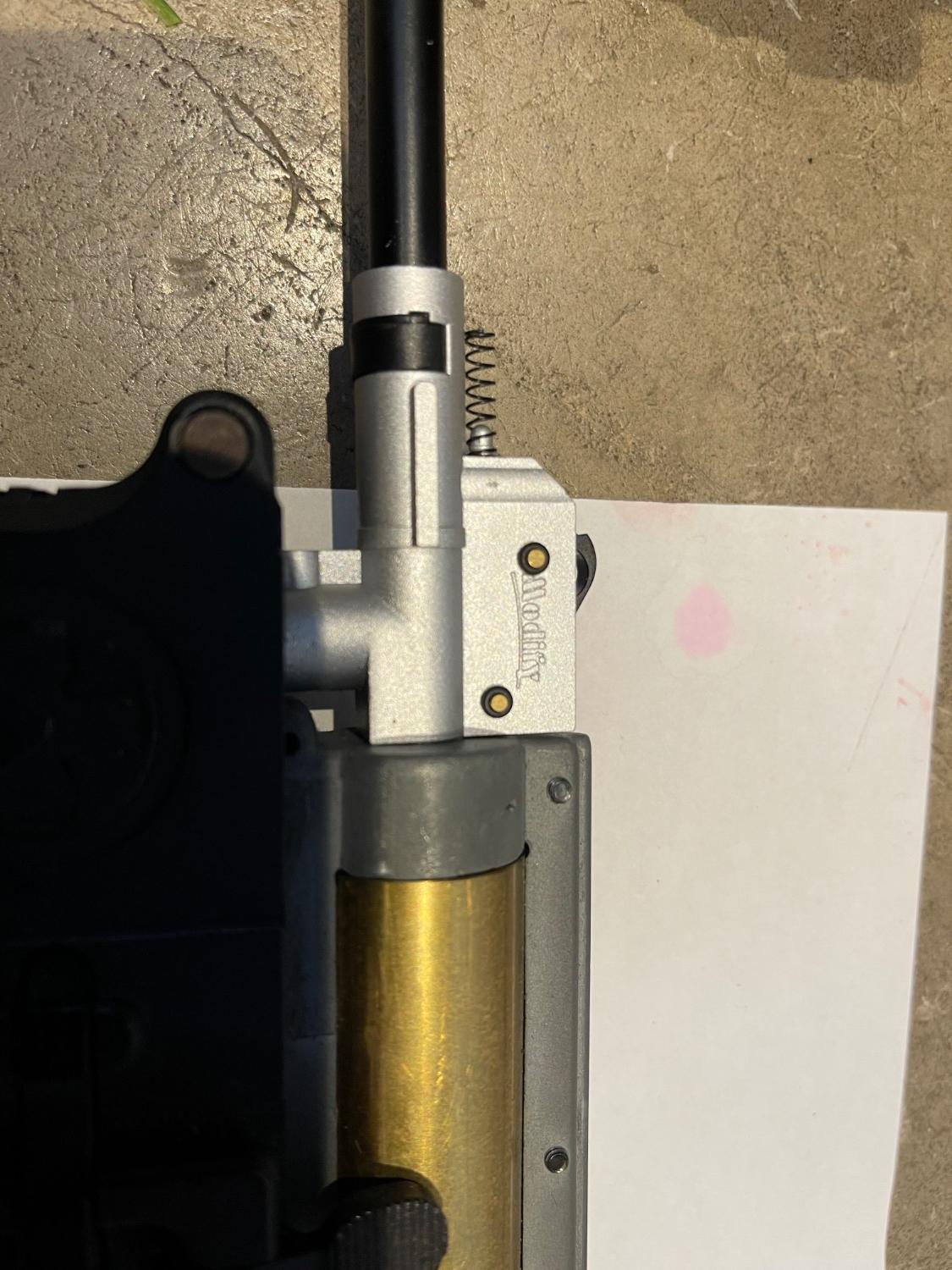 Rear wired V2 gearbox and eg max hyper 1000 motor. Modify hop unit with Madbull python V2 tight bore barrel.