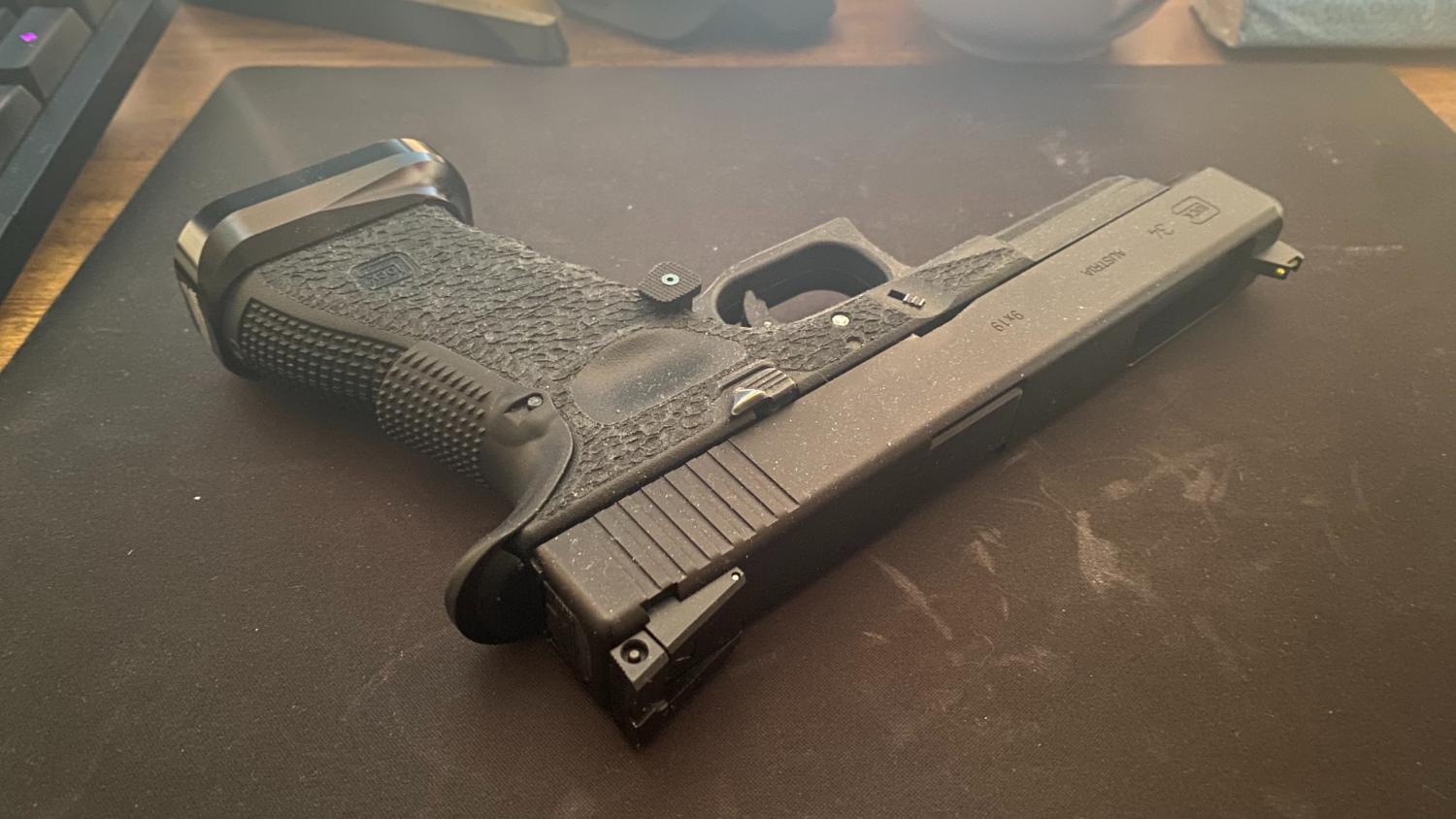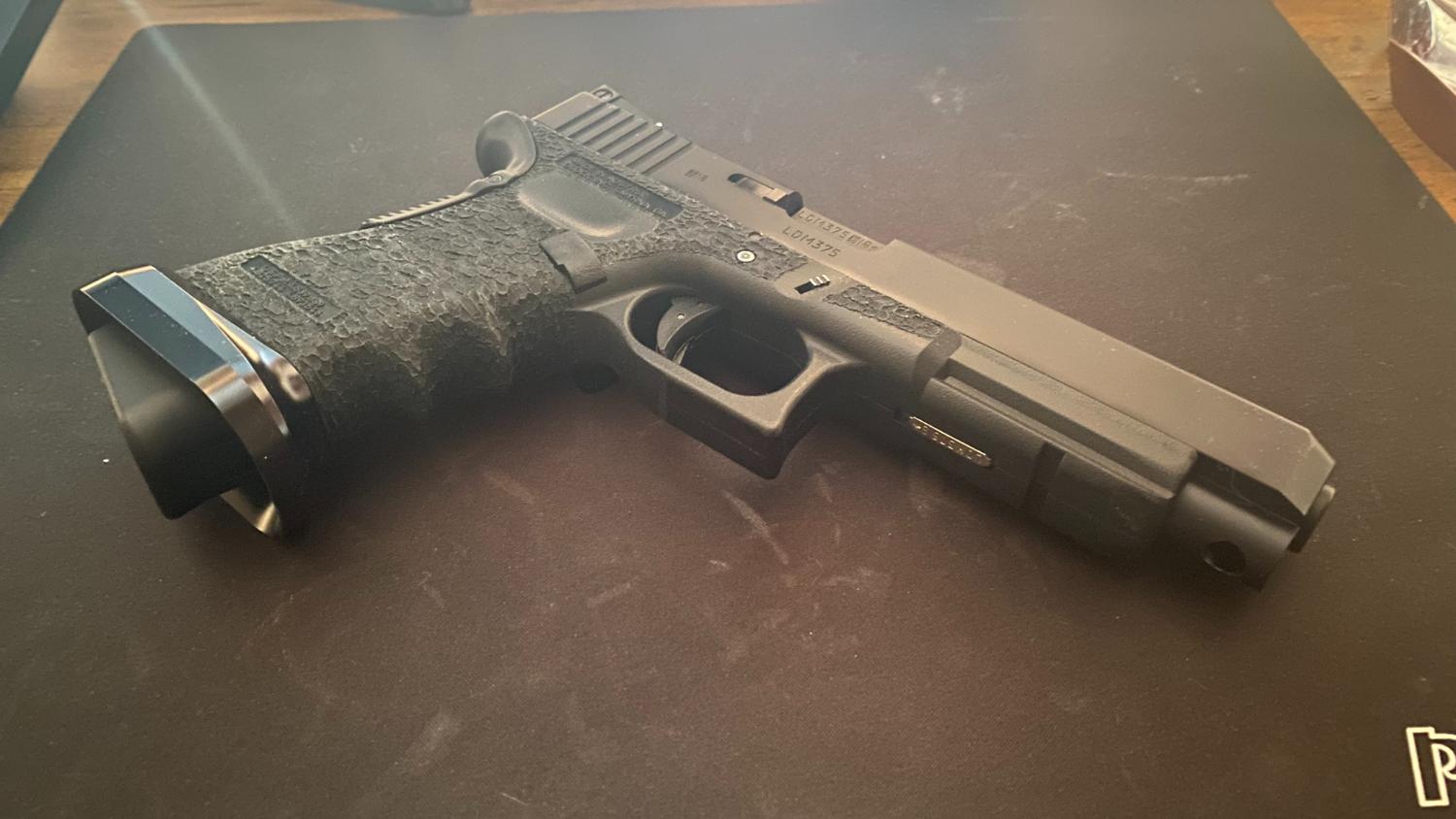 This is the glock I used in IPSC. However I rarely use it since I am Hi-capa mained. Fully functional with heavy modifications including: PDI 6.01mm barrel, Prime Aluminum Slide and Barrel set for G34, TTi style magwell, Guarder g17 frame (stippled), AIP reinforced nozzle with high flow bulb. No scratches. Comes with 3xWE mags (flat outlet nozzle).