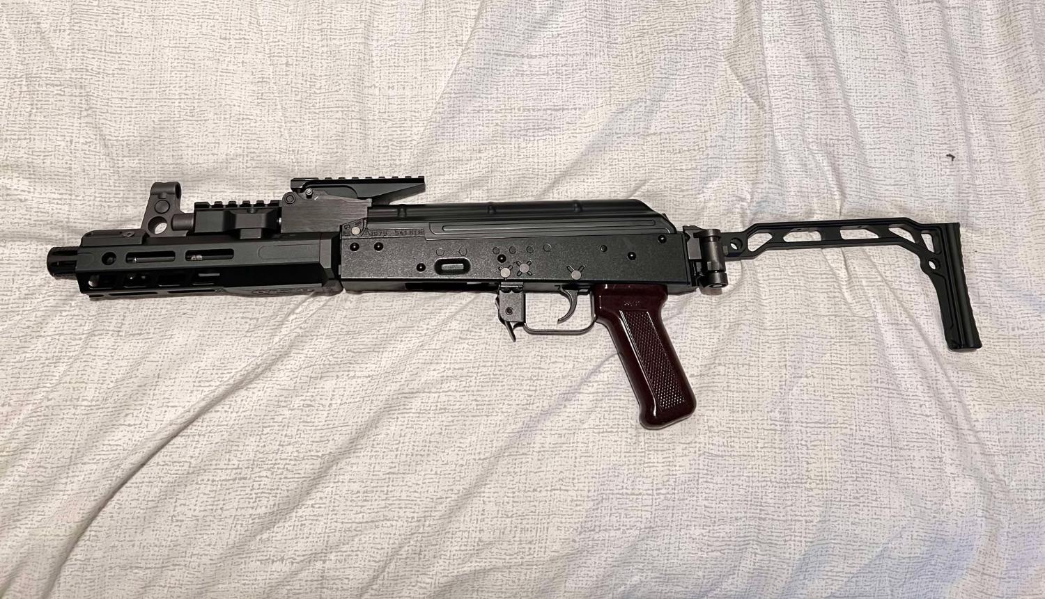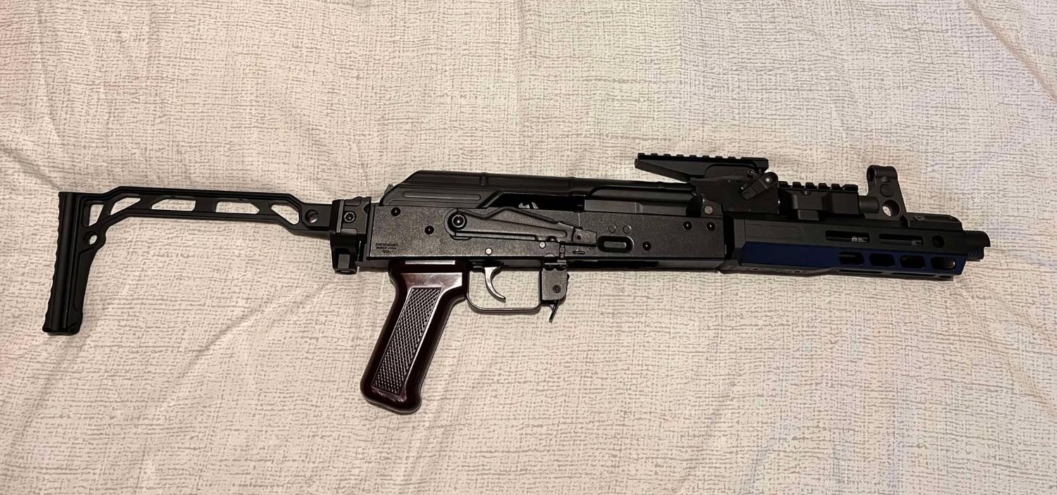The handguard that is on the AKM in the pictures is the 6.5" version. To fit this I had to fit a barrel extension onto the barrel that came with the 4.7" and shaved it down to allow the front sight post to fit on it, I also had to cut abit off the front sight that came with the 4.7" inch kit to allow everything to fit in together. If you want to run the complete 4.7" handguard you will either have to glue the bit that I chopped off onto the sight or buy a new one from jkarmy