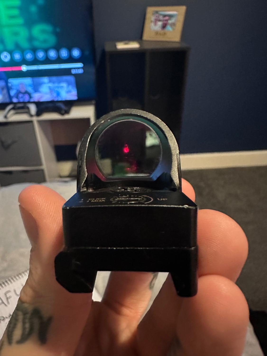 Hi everyone I have for sale a really nice quality replica trijicon SRO sight it’s been used I had it in my SIG P320 M17 really nice metal well made red dot sight works perfect with deferent levels of brightness wanting £35 all in 24hr post email me on [email protected] ore text me on 07530689244 for a quicker response open to offers ?