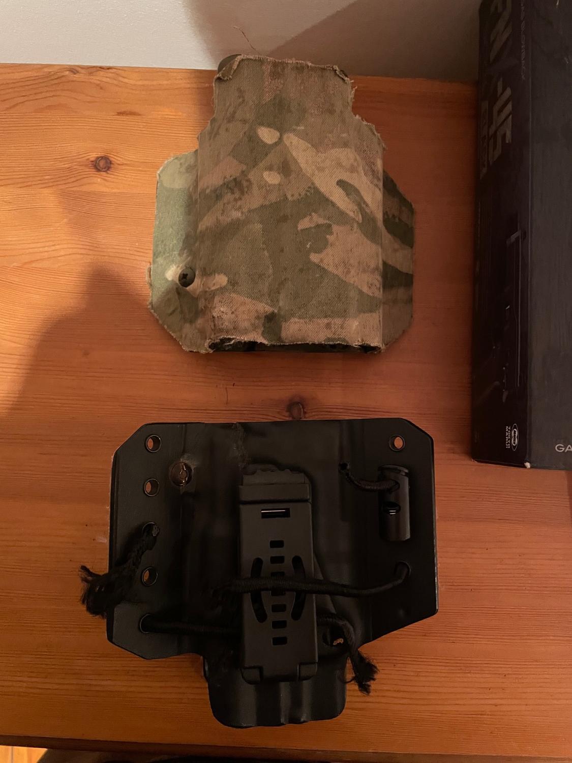 2 Kydex Customs Holsters (Light bearing for O-Light), 1 has a crack, but functions, 1 belt loop mount.