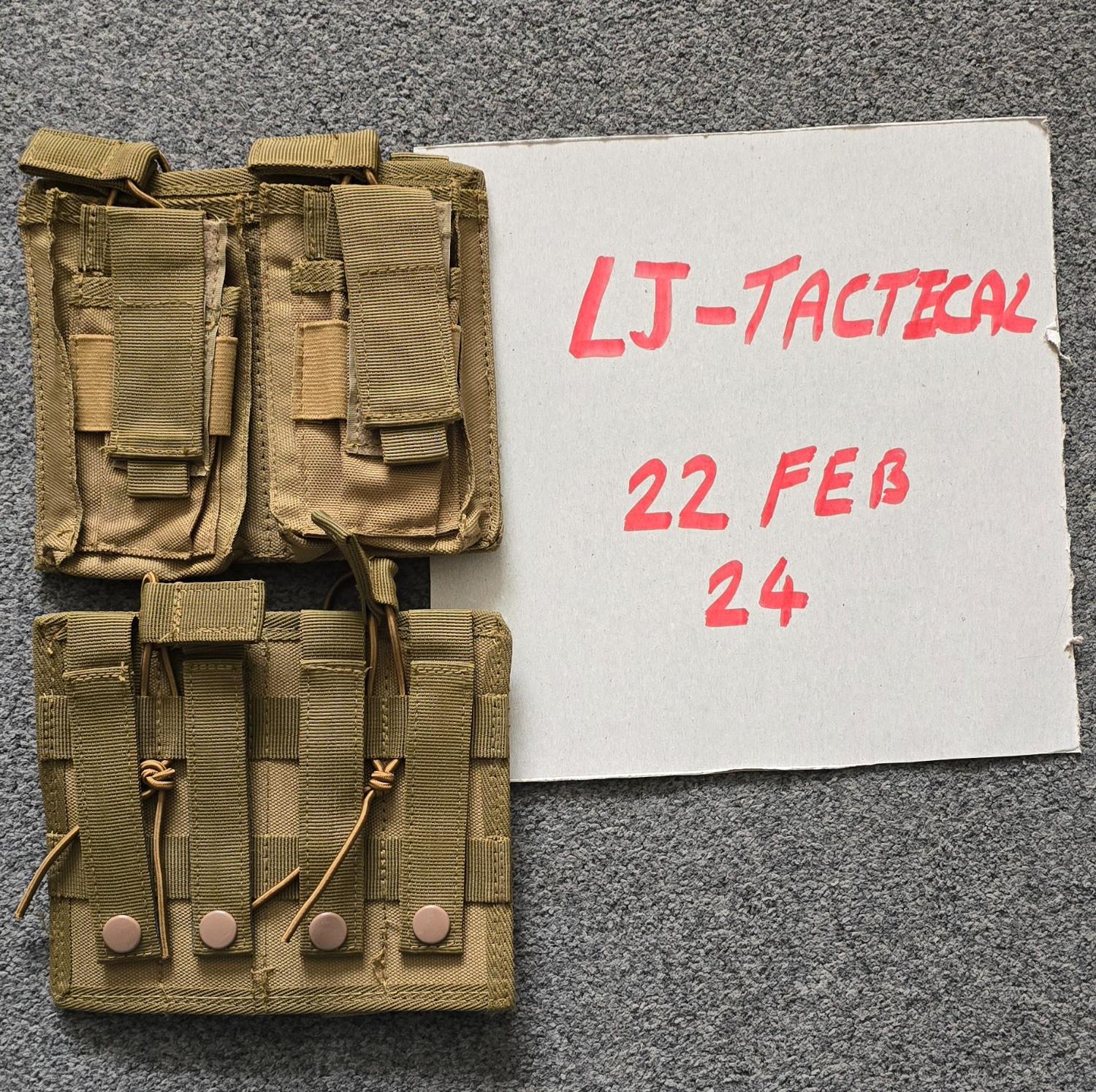 4. 2 x Unknown brand coyote kangaroo pouches 2 x 5.56 and 2 x pistol mags each. £12 each or £20 the pair.