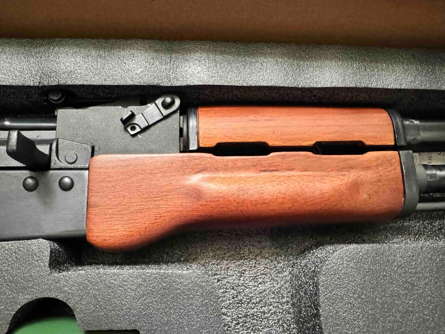 - The stock, handguard, and gas pipe cover are made from genuine wood.