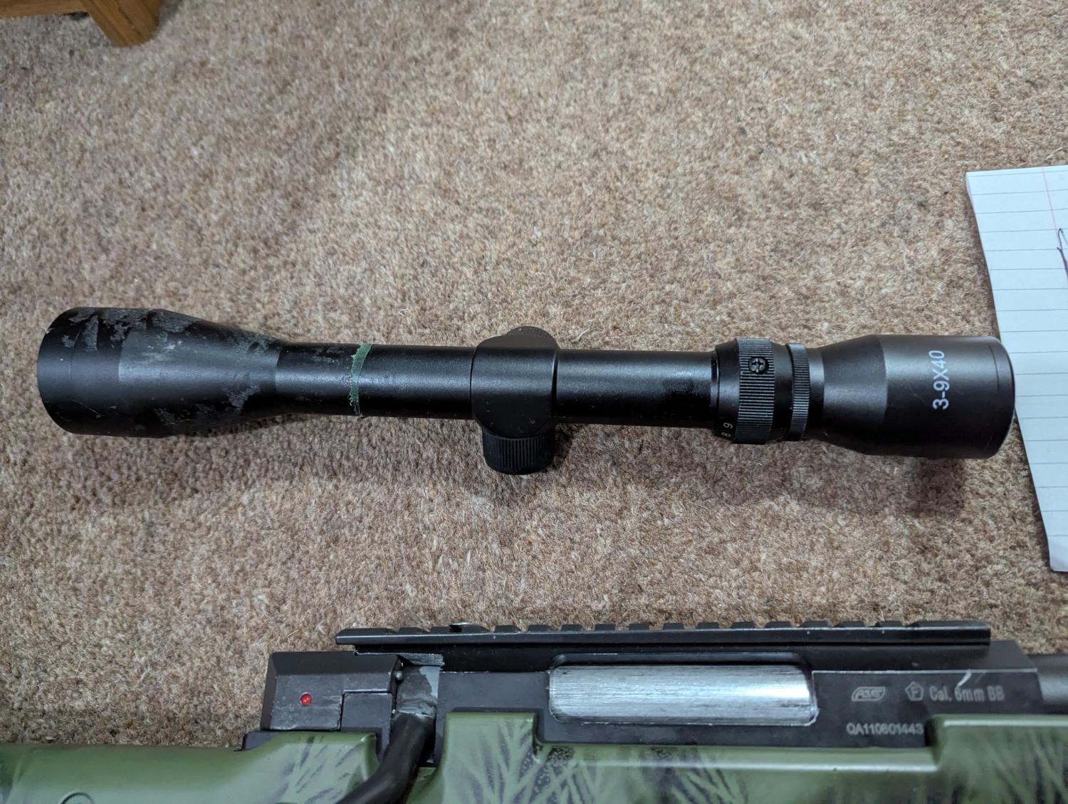 It comes with 1 magazine and as can be seen in the photos someone has tried to do something to the end of the outer barrel, this will want tidying up but does not effect the shooting of it. The scope is included but has had something stuck to it on the past so has a sticky residue on the outside and also requires scope rings.