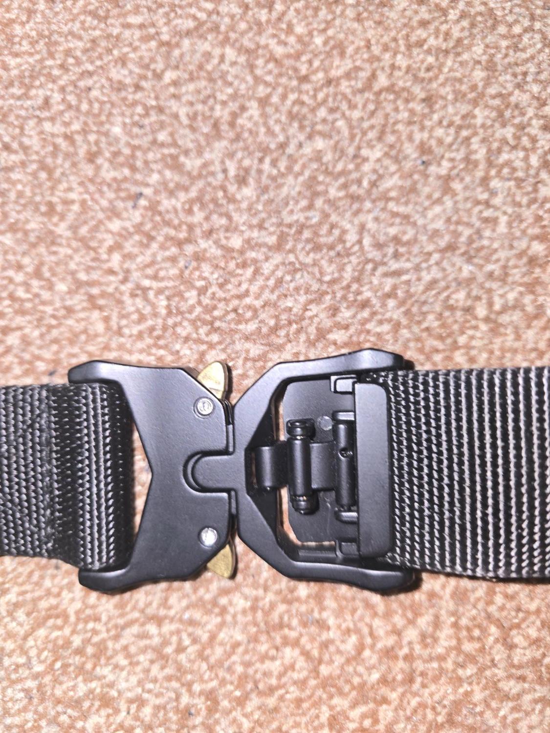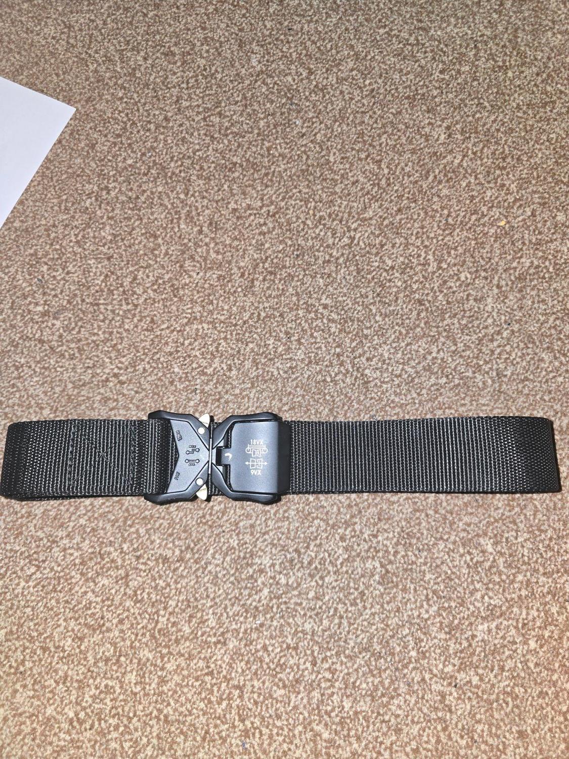 Selling as I bought deadly customs belt, never been used in mint condition, buckle is 5cm wide belt is 4cm wide, can fit a waist upto 50 inches