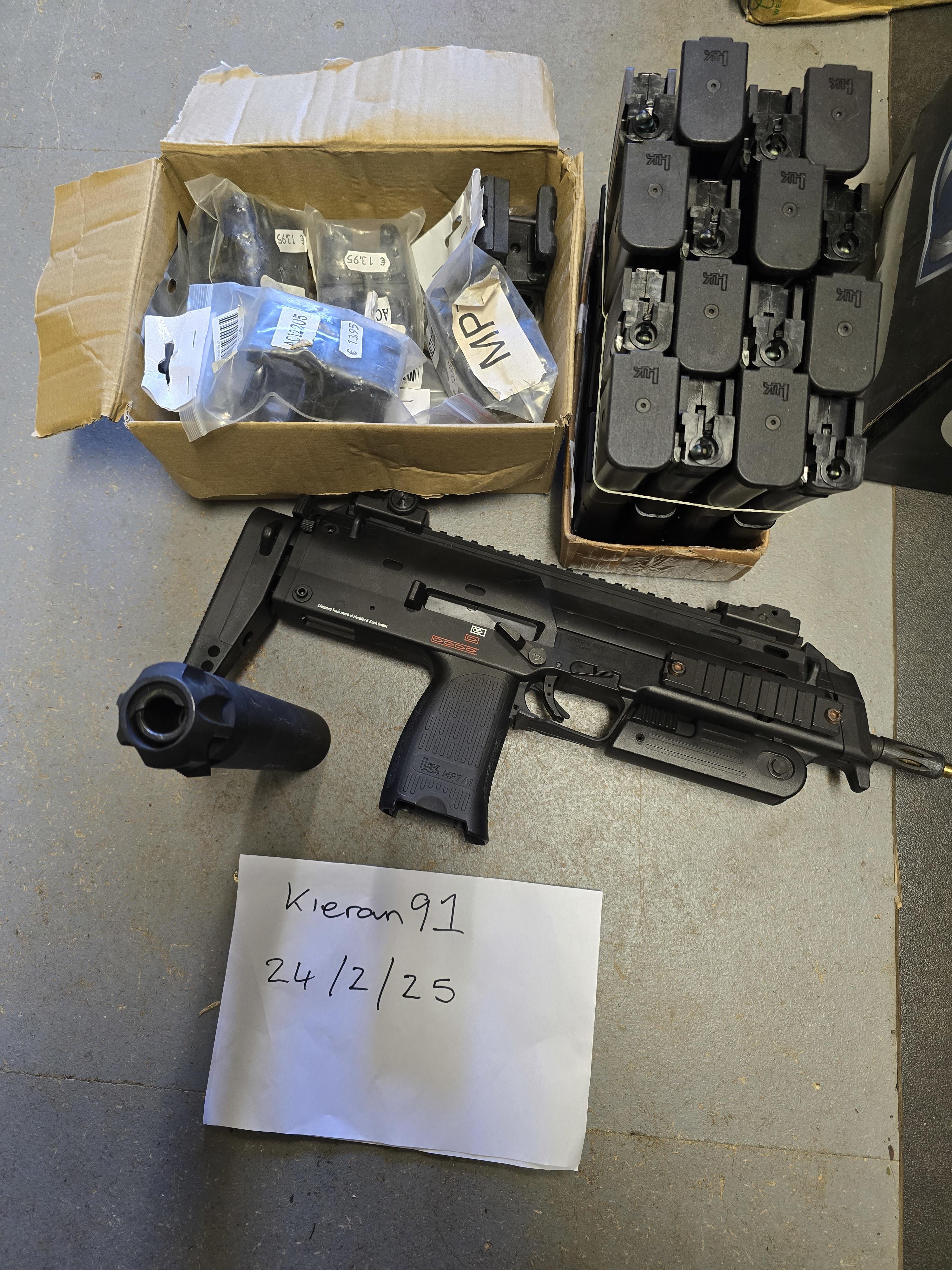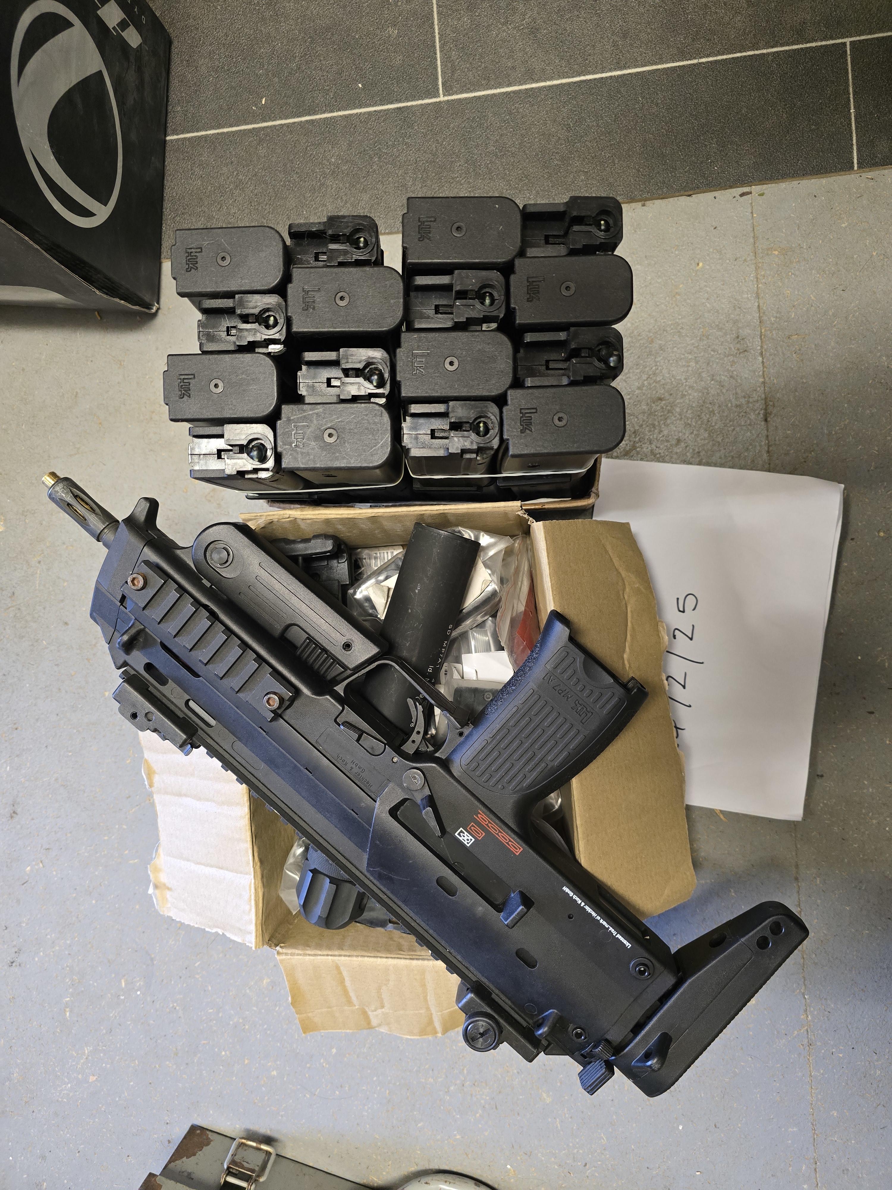 Vfc aeg mp7 forsale, was shooting targets in garden and it just stopped, believe it to be trigger issues, it has had the tappet upgraded and the standard bits, comes with loads of spares including 16 magazine and the suppressor, feel free to ask questions will answer the best I can. Cheers