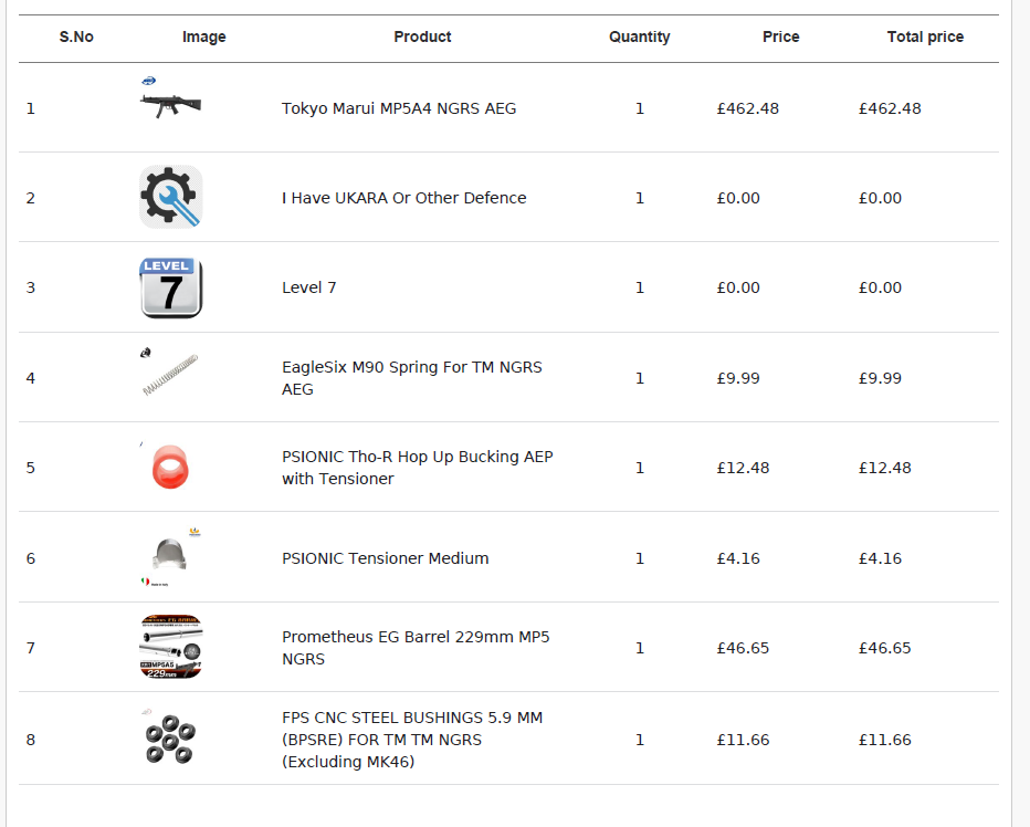Eagle 6 Level 7 upgrade package (max upgrade for MP5) i.e., eveything got upgraded - you can see photos attached for the detialed upgrade list - overall cost c.1200 on the gun alone