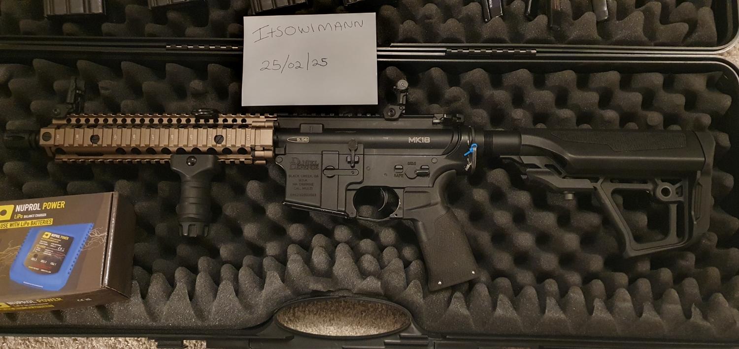 I bought it new in November but have moved onto GBB. It comes with what's in the picture, 11.1v crane 1450 mah nuprol battery, 7.4v rebel 1450 crane battery, 3 nuprol metal high cap magazines, 1 ics midcap metal magazine, 1 nuprol Lipo charger and a nuprol hard carry case. I no longer have the original box, the gun is in good condition, there is a couple of marks around the sling point and trigger guard from wear and tear. The only upgrades I have done on this gun is prometheus hop rubber and bucking the gun shoots very well.