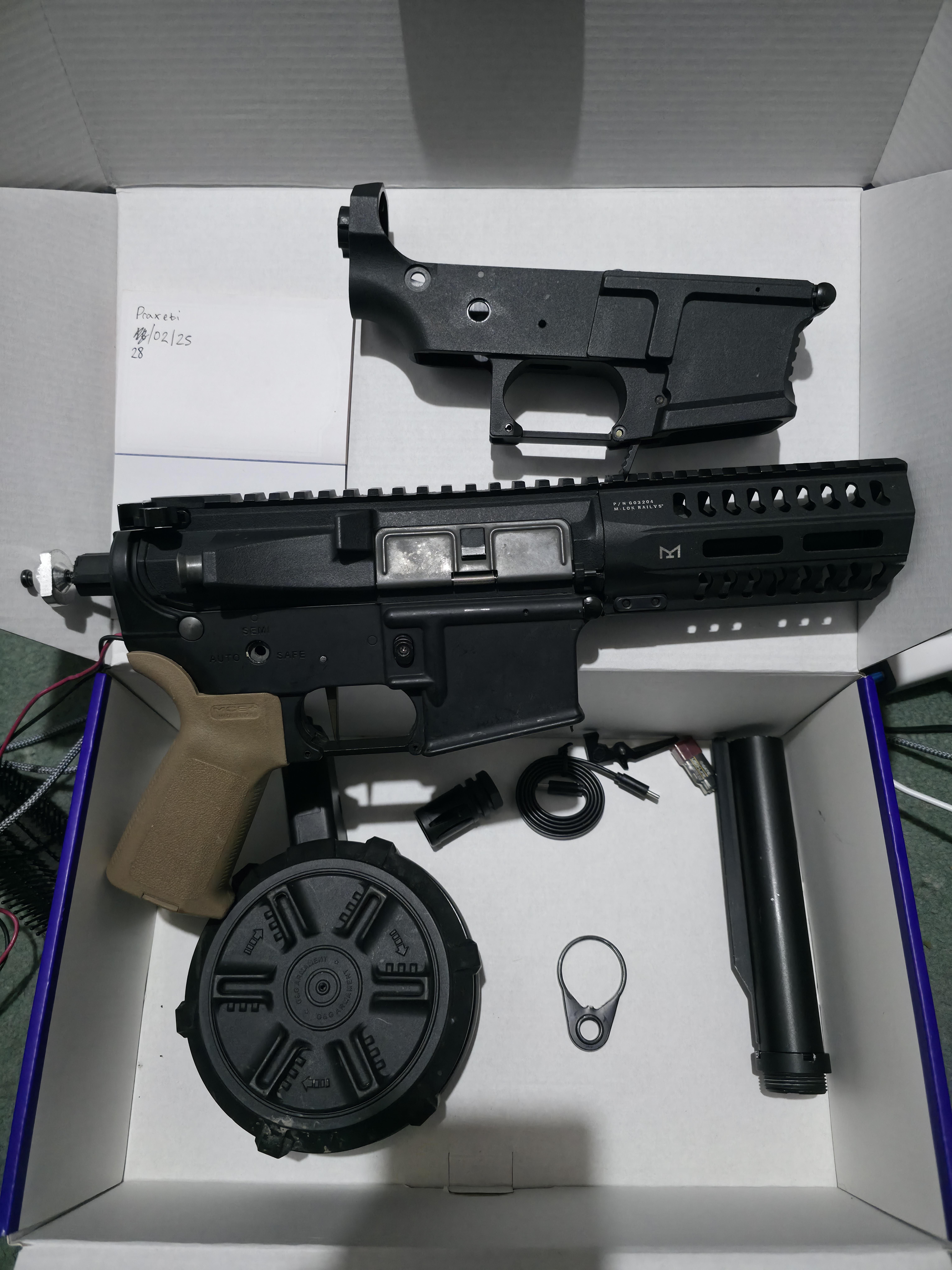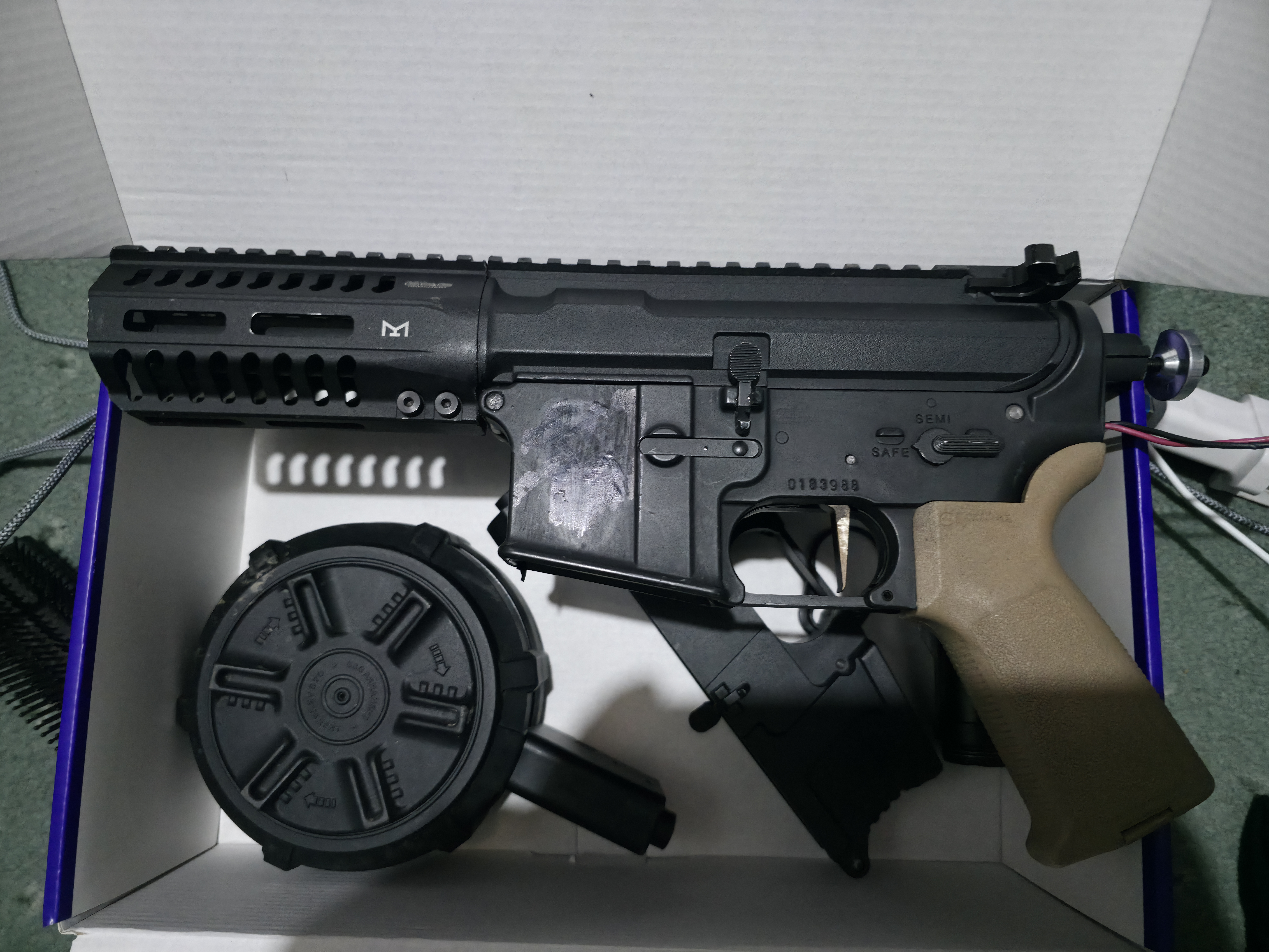 Currently fitted with a cm16 combat machine lower for M4 magazines.