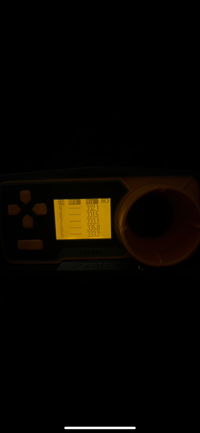 -Shooting roughly at 330 fps on point 2s (see photos).