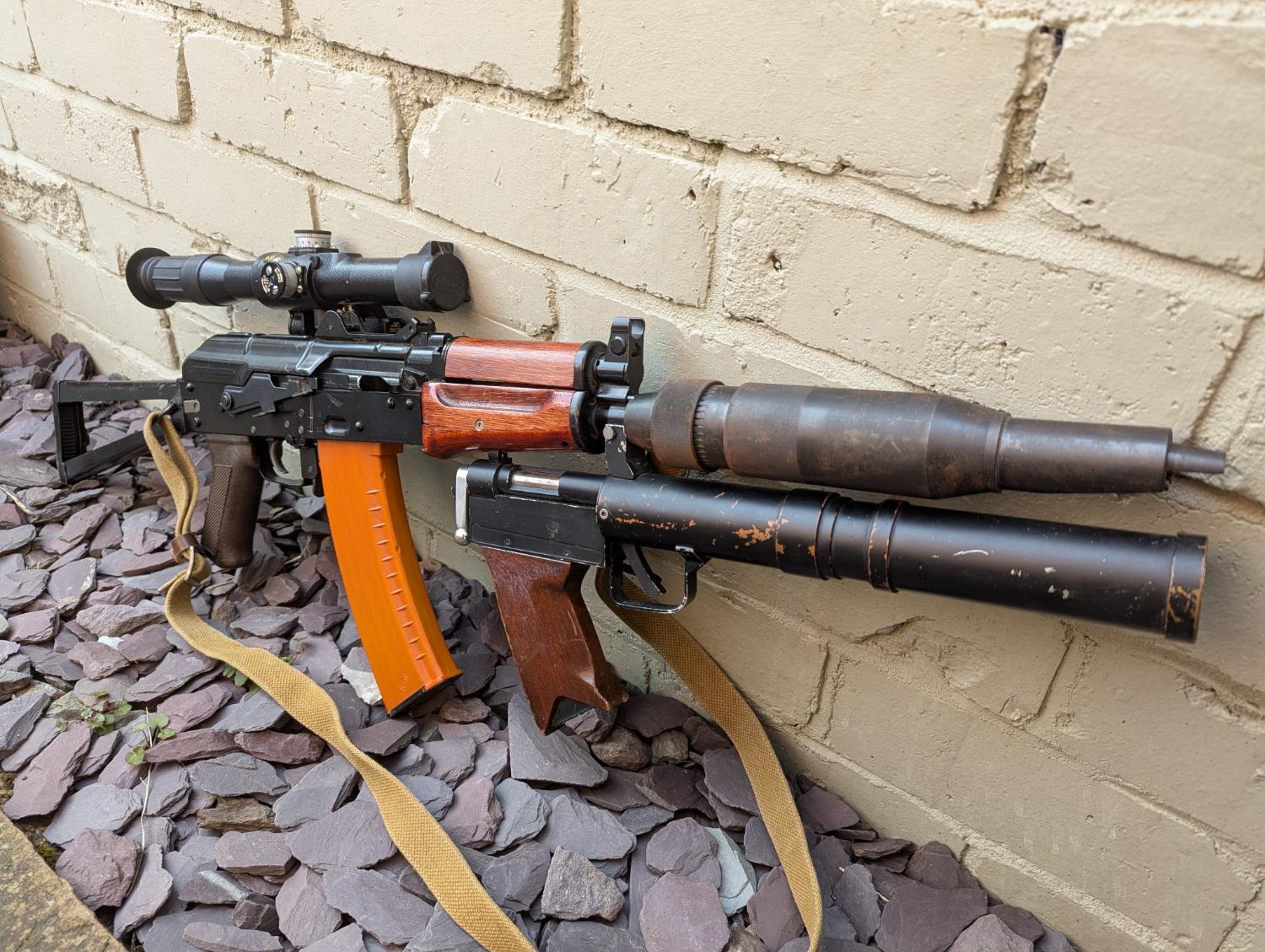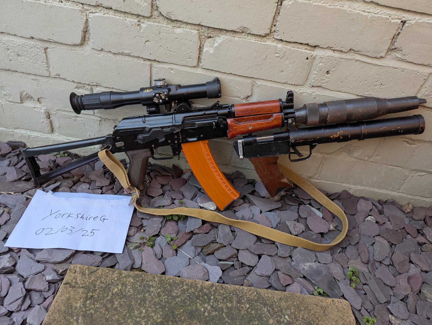 Tishina Grenade launcher, silencer, scope, sling, 4 X high mags, spare handguard