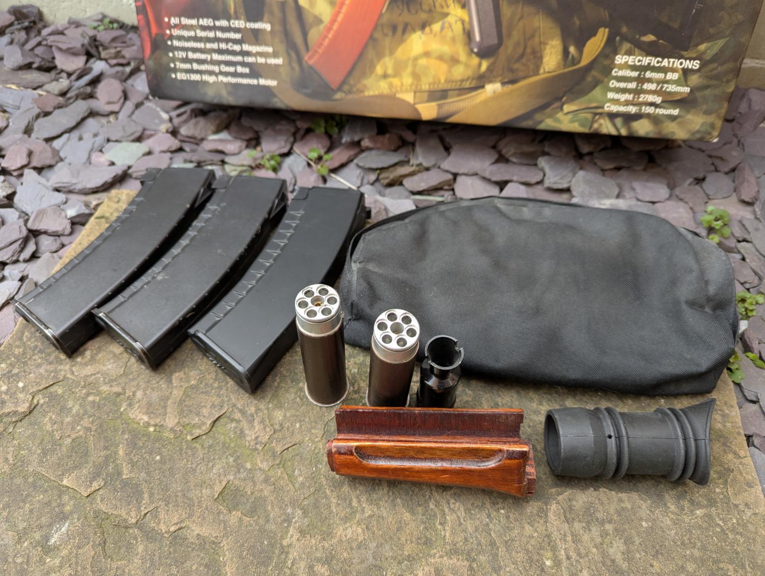 I'm selling this as well as my other Airsoft stuff as I stopped airsofting a long time ago. The AK works fine but could do with a little tlc and some upgrading.