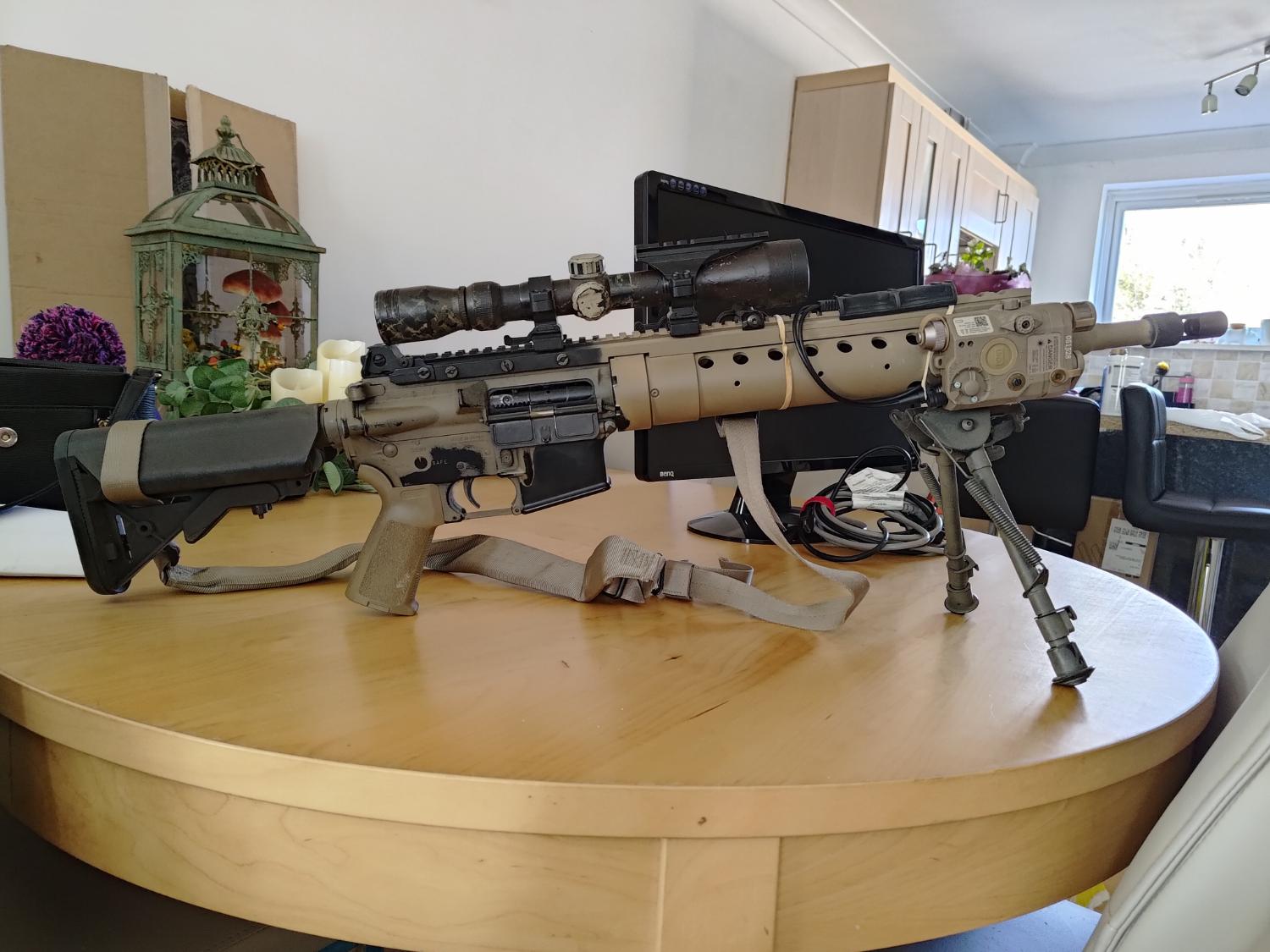 I have for sale my trusty TM NGRS M4 which has been kitted to look like a MK12 MOD 0 SPR.