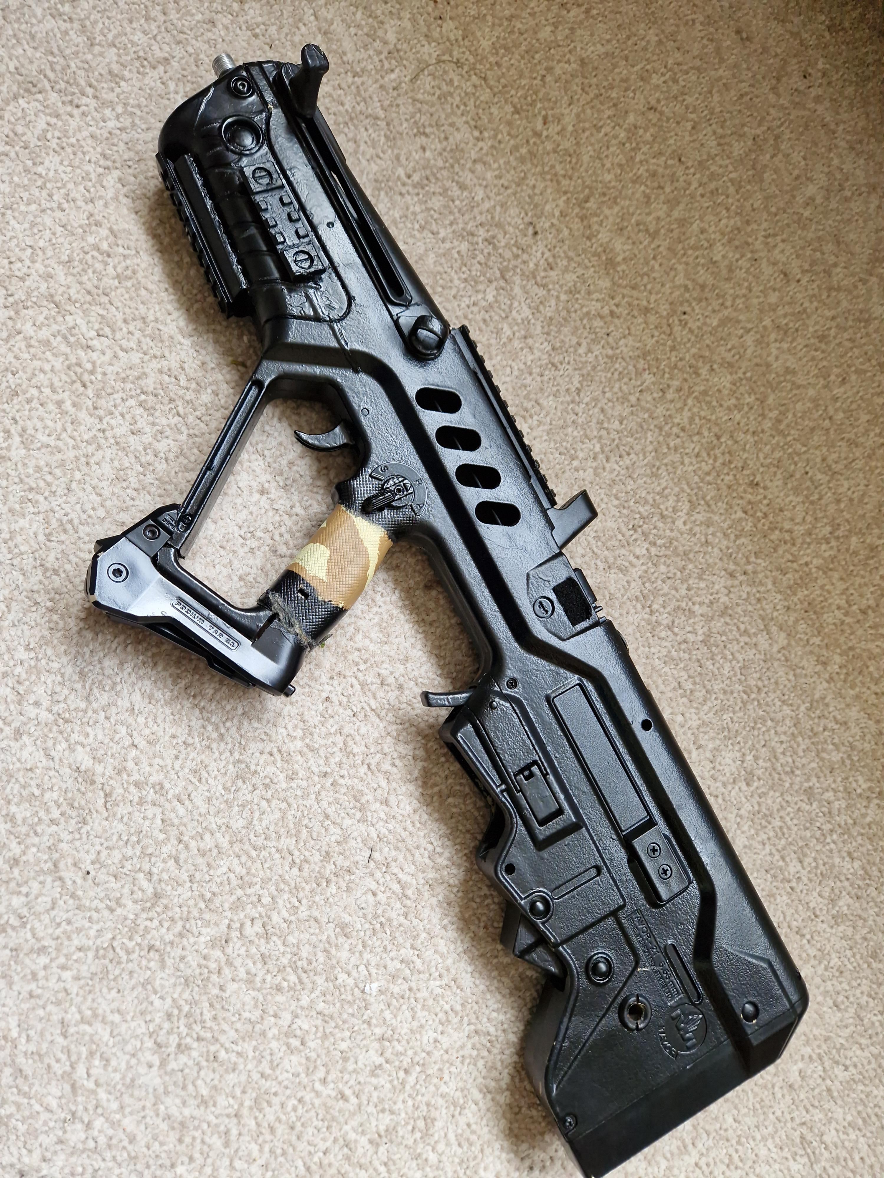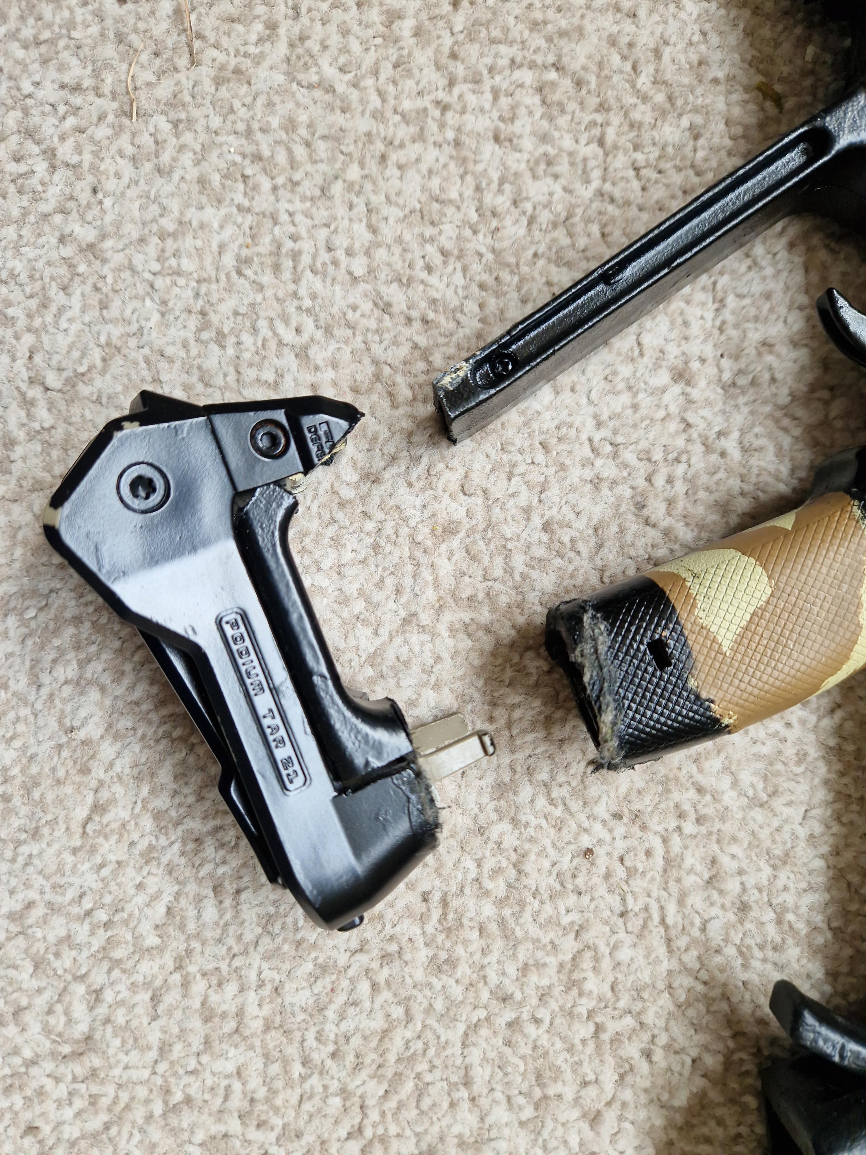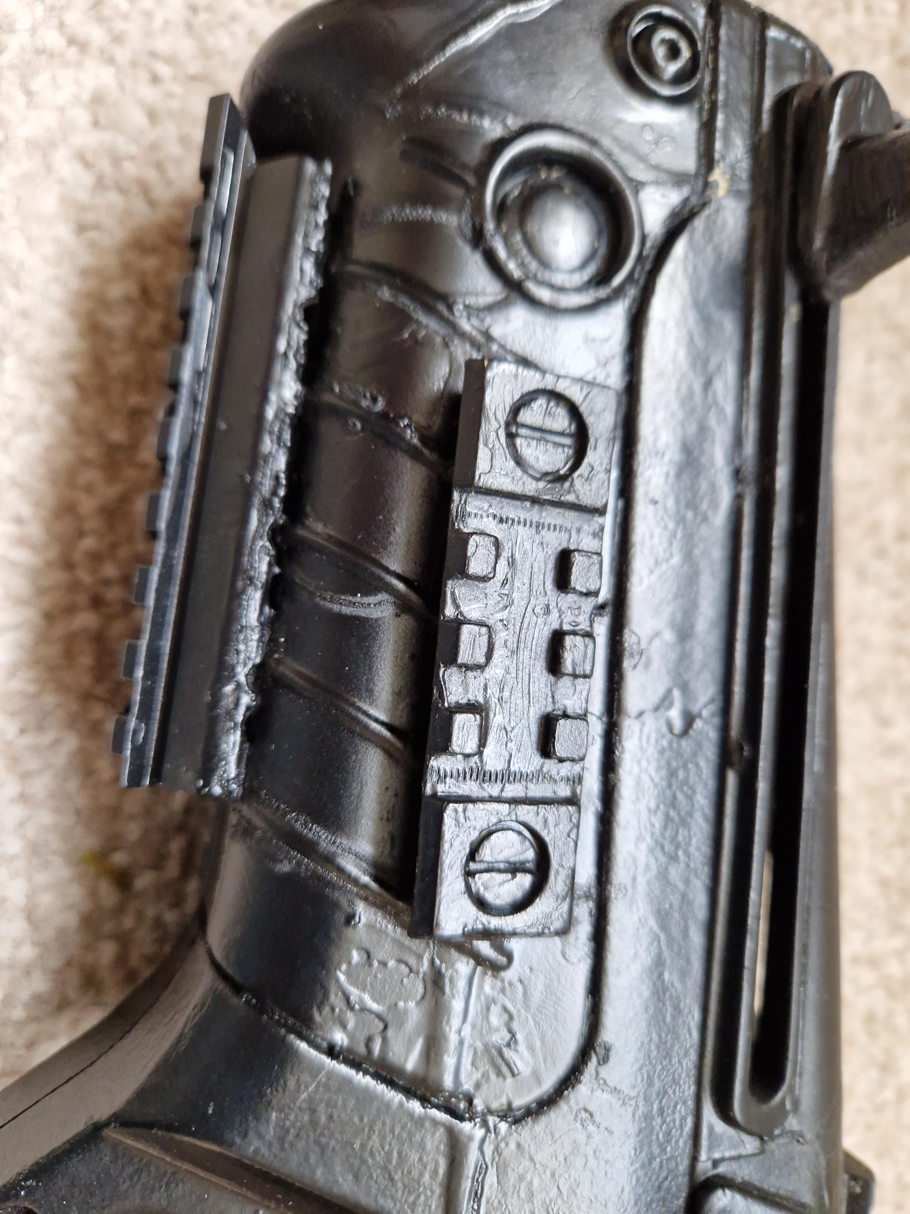 Someone has cut the lovely pistol grip and surround to badly fit a fab defence podium.