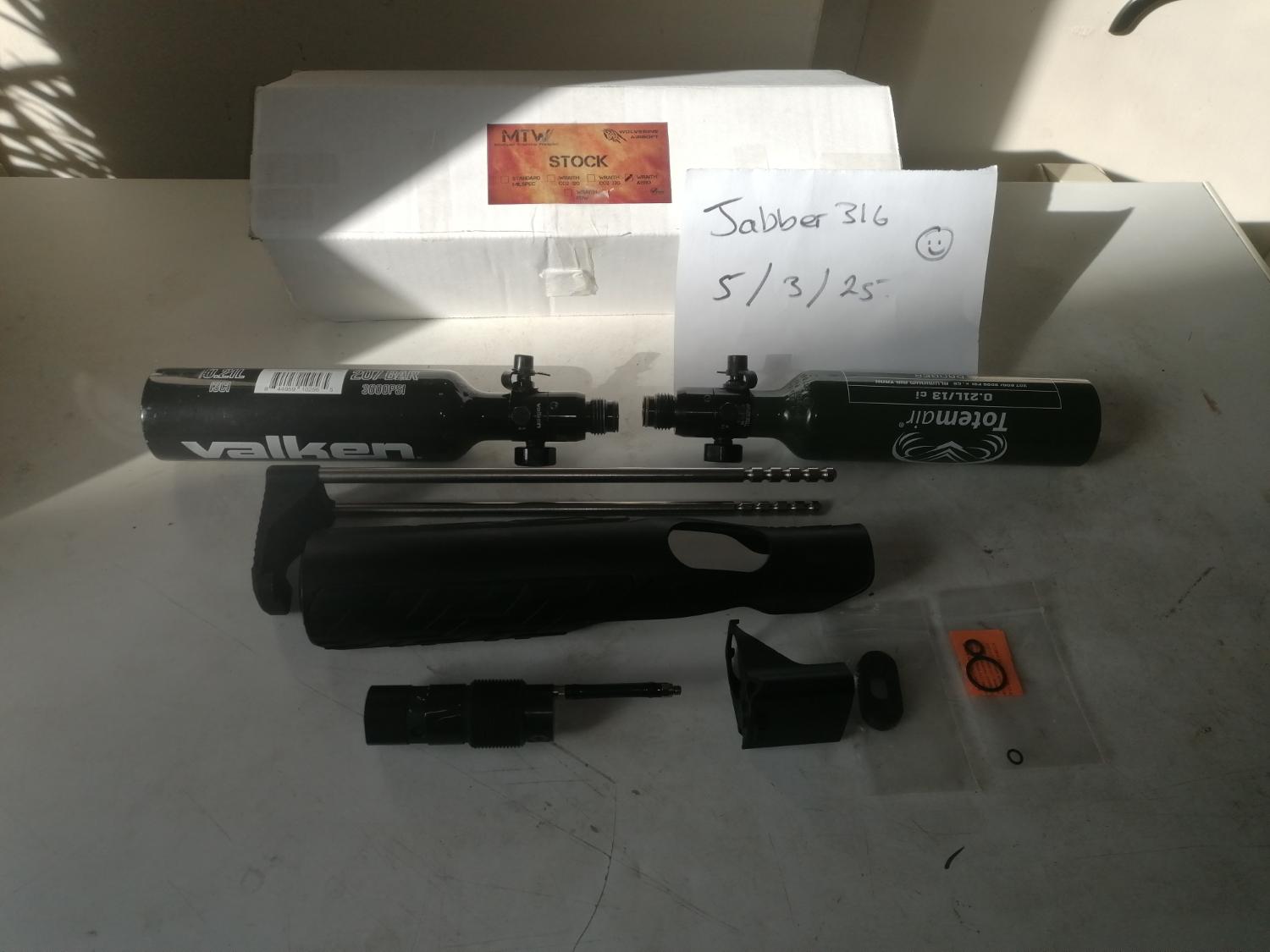 Wraith aero stock with two bottles taken out of my mtw, in full working order complete with the stock and bottle cover awesome bit of kit, reason for selling is the new owner of my mtw didn't want the stock so it's up for sale grab a bargain easy to install thanks for reading my advert postage will be £20 due to weight...