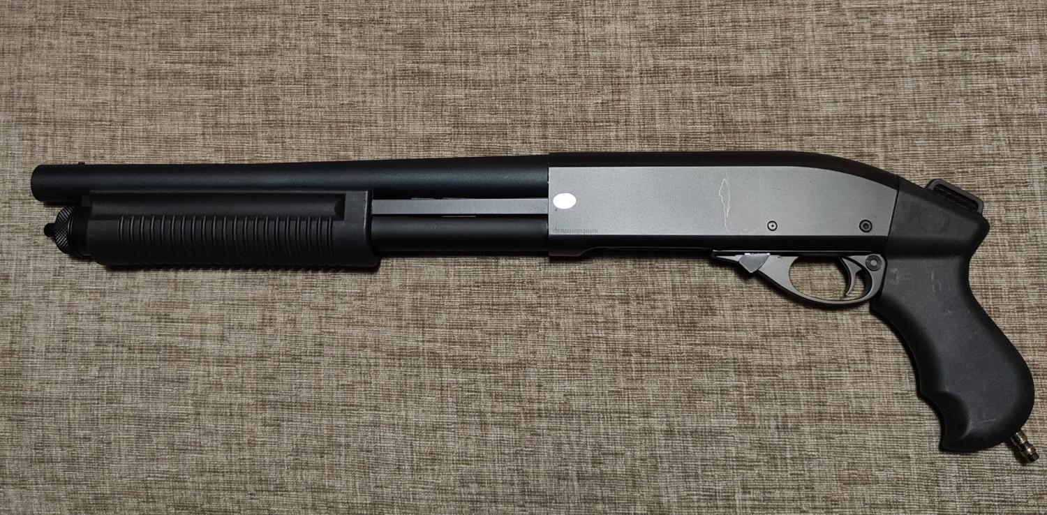 Selling this HPA tapped golden eagle M870 breacher. Only used once and sat in storage for a while just selling for some extra cash. Minor wear on slide and mag release as detailed in photos, usual with gas shotguns. It comes with the original valve if you want to run it gas and everything shown in photos: the 3 original shells, 6 shells bought from airsoft world, a velcro elastic shell holder and an adapter to load the shells with the odin/clones. Paid via paypal G&S and shipped via parcelforce tracked 48. Any more photos/video of it firing can be provided if requested